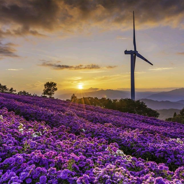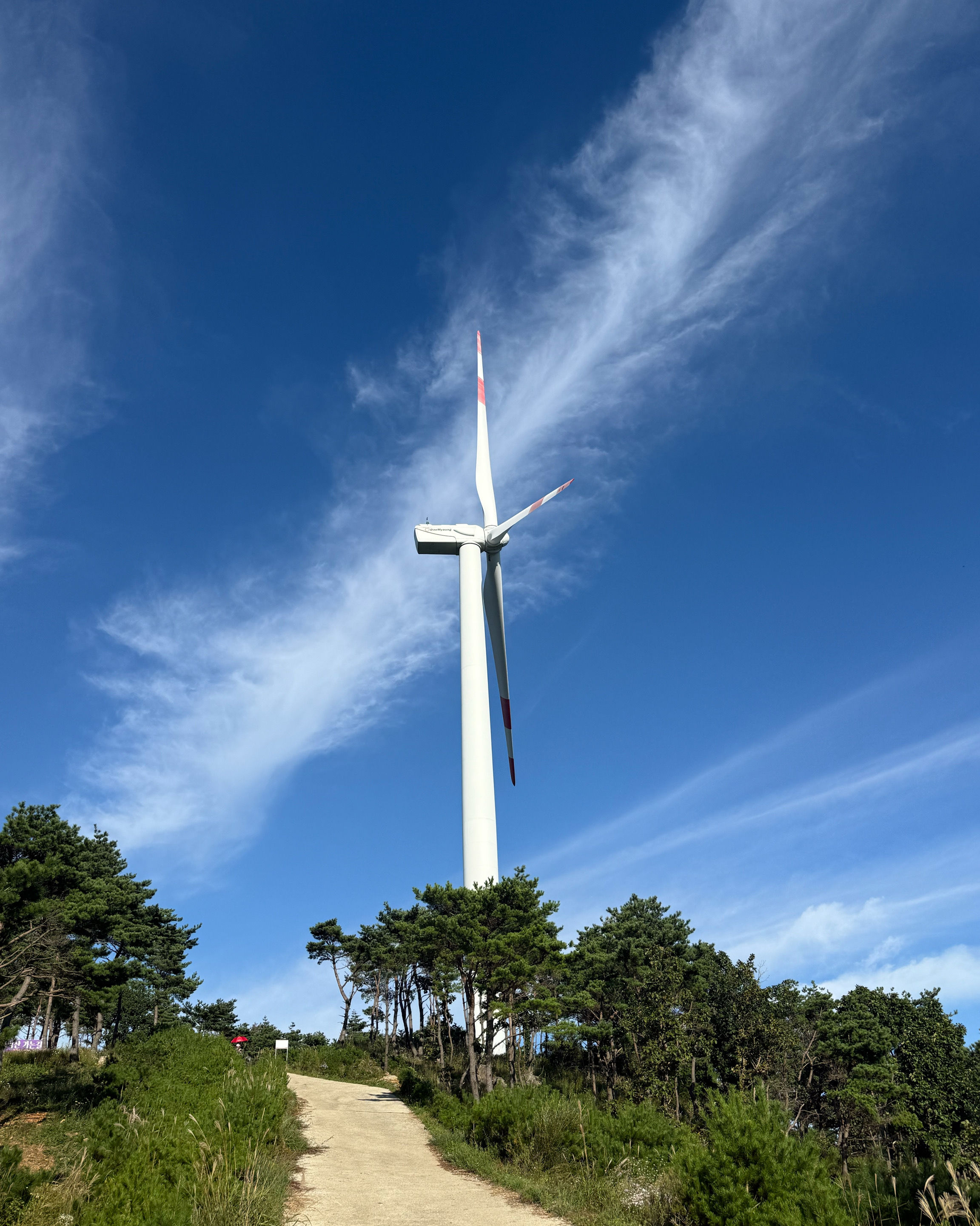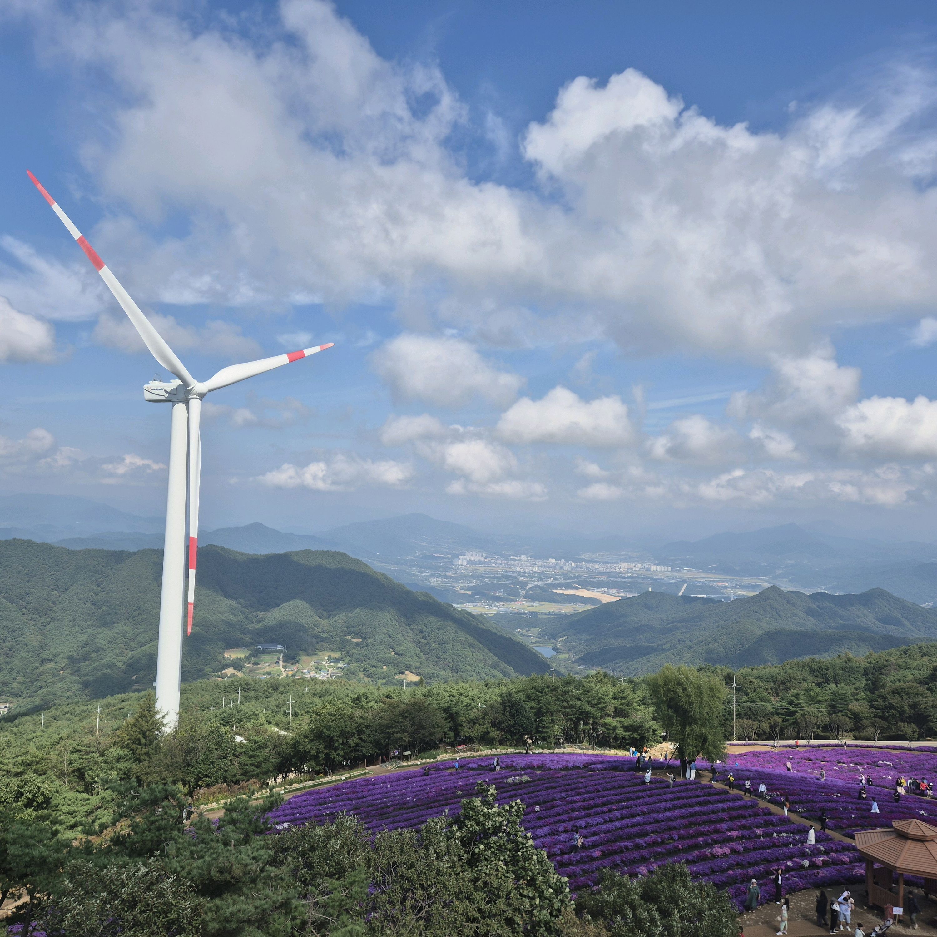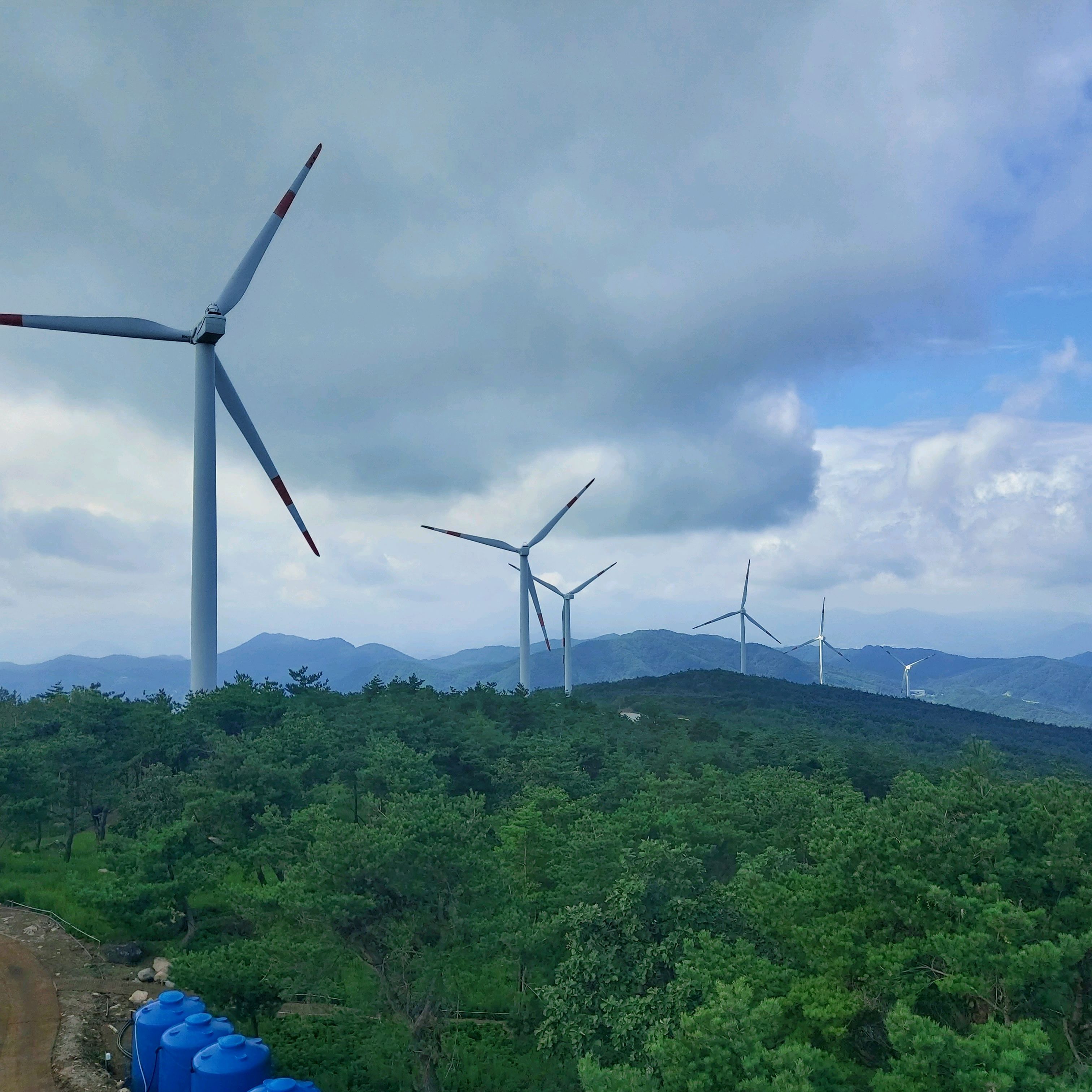 풍력발전기를 배경으로 한폭의 멋진 풍경이 끝내주네요