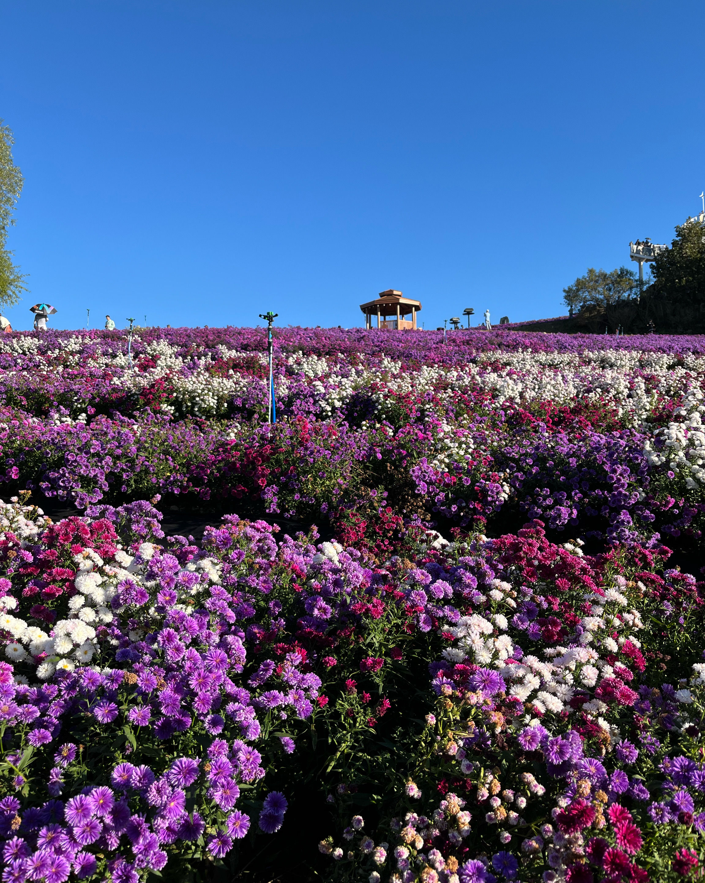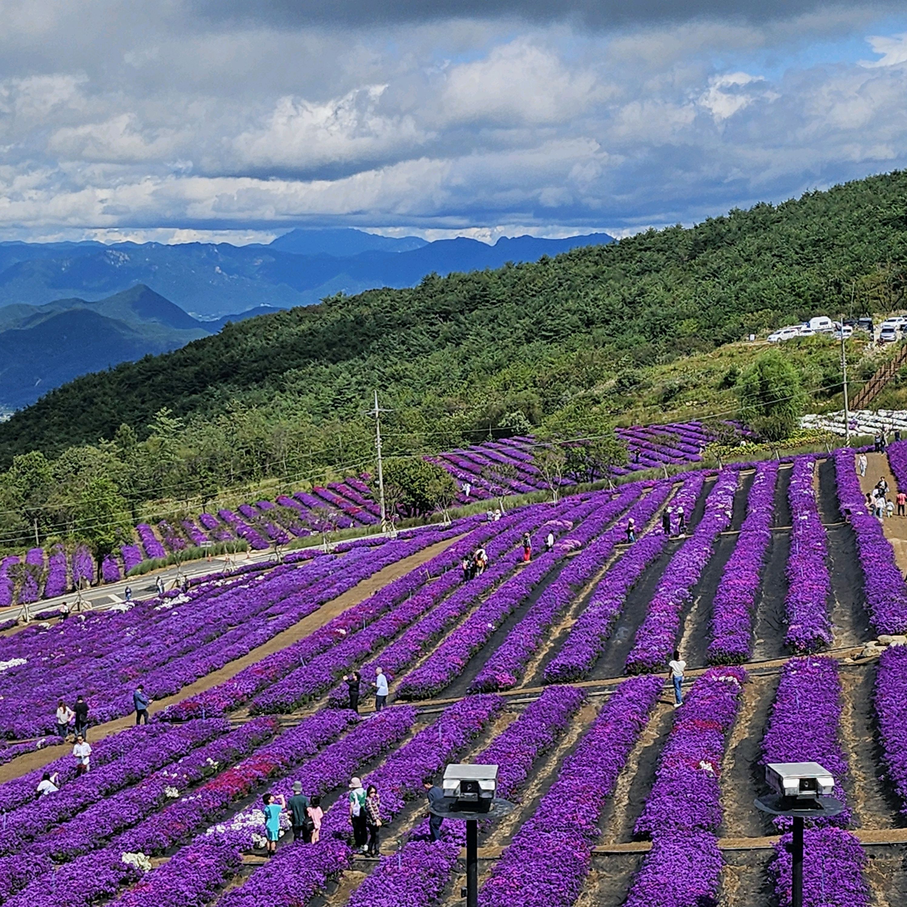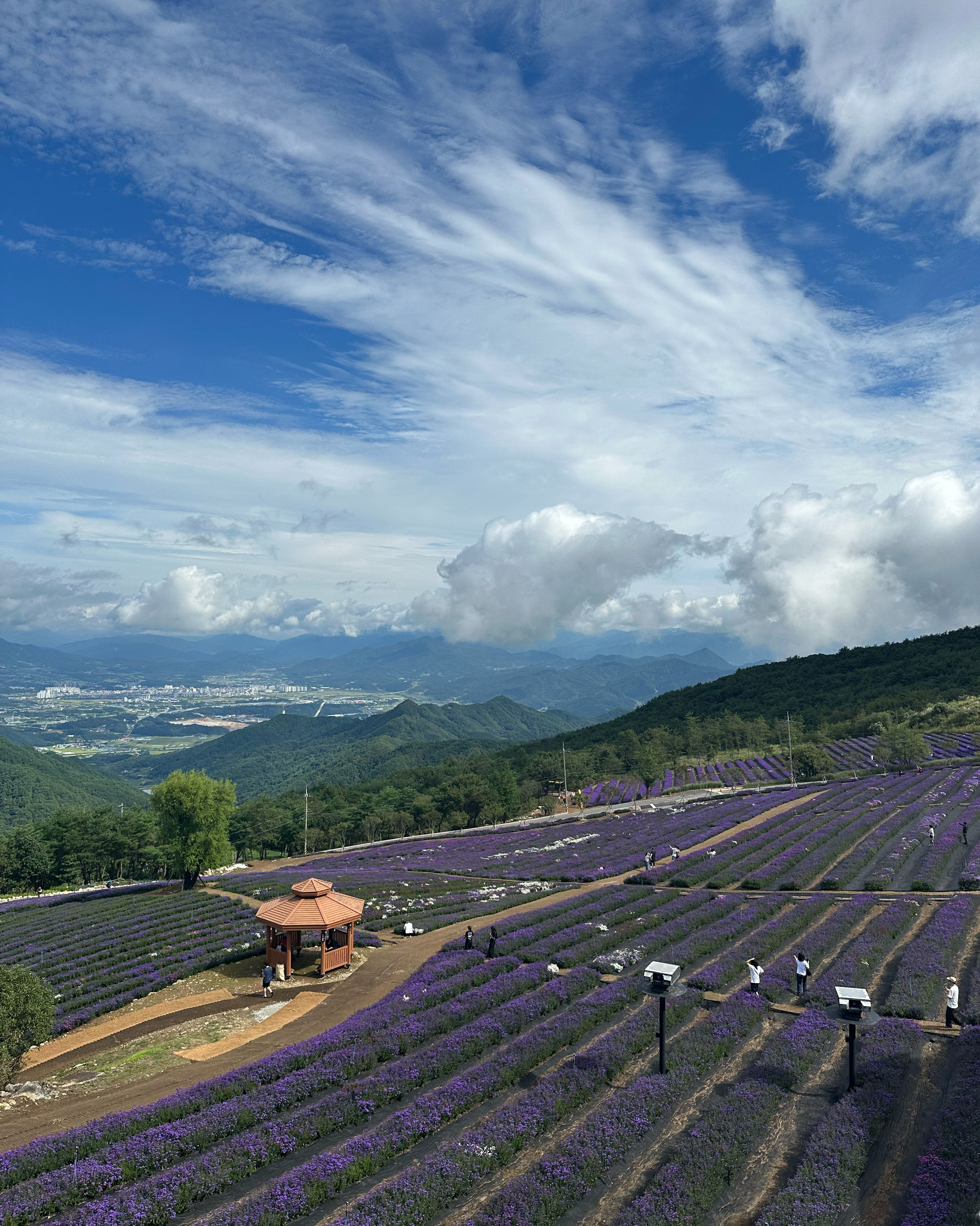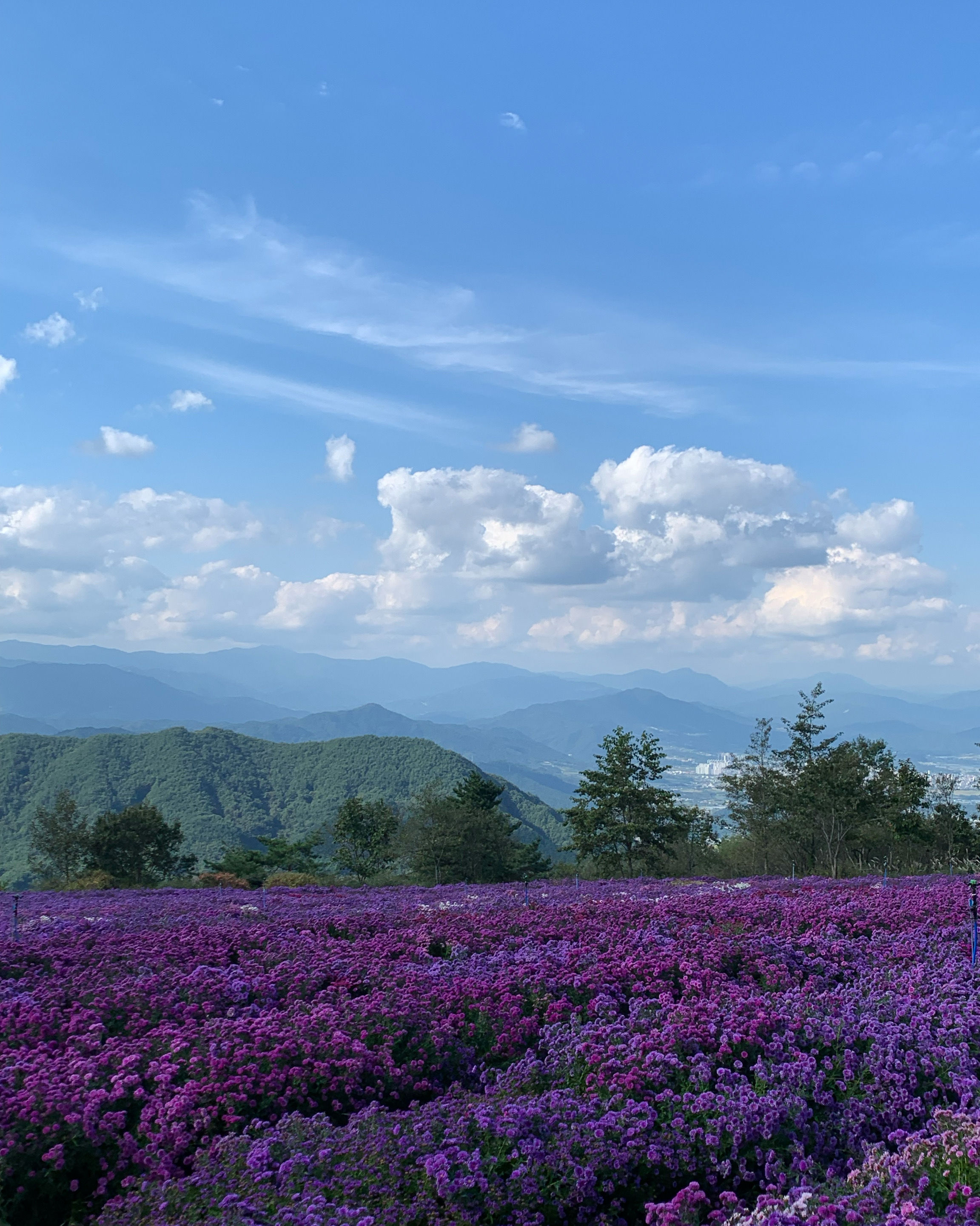 아침일찍도착해서 붐비지 않게 잘 구경했어요 보라색꽃을 처음 보는데 이쁘고 사진을 찍으면 다 잘나와요 특히나 하늘색이랑 보라색 조합이 정말 잘어울리고 전망대에서 바라보면 도심이 다보이고 가길 잘했다싶네요