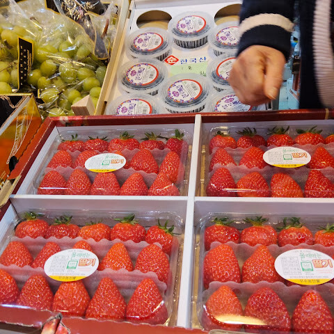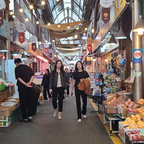 저희는 지난 오후인 2026년 4월 4일에 이곳에 왔습니다. 와... 이곳은 전통 한국 시장이네요. 다양한 김치, 한국식 기팡안(인도네시아에서 파는 것과 같은 종류), 신선한 과일, 그리고 오뎅, 두부볶음, 아이스크림, 츄러스 같은 다양한 간식거리가 가득합니다. 시장은 깨끗하고 건조하며 정돈이 잘 되어 있어요. 구경하는 재미도 있고, 가격도 슈퍼마켓보다 저렴합니다.<br>서울에 가신다면 집으로 돌아가는 길에 꼭 들러서 신선한 김치와 다양한 기팡안을 기념품으로 사 가세요.