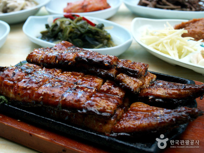 진흥가(진흥식당)은 풍천장어와 전골메뉴가 주메뉴이다. 그 외에 산채비빔밥, 더덕무침, 우렁된장전골 등으로 식사가 가능하다. 우직하게 사장님의 박자대로 운영하는듯한 가게이다. 깨끗하고 정갈한 내부와 한 눈에 봐도 깨끗 그 자체인 부엌을 유지해 안심하고 음식을 즐길 수 있다. 고창군 관내 680여개 일반 음식점 업소 중 모범업소로 선정되어 자부심을 갖고 서비스하고 있다고 한다. 음식도 깔끔하고 맛있다는 평이 자자하다.