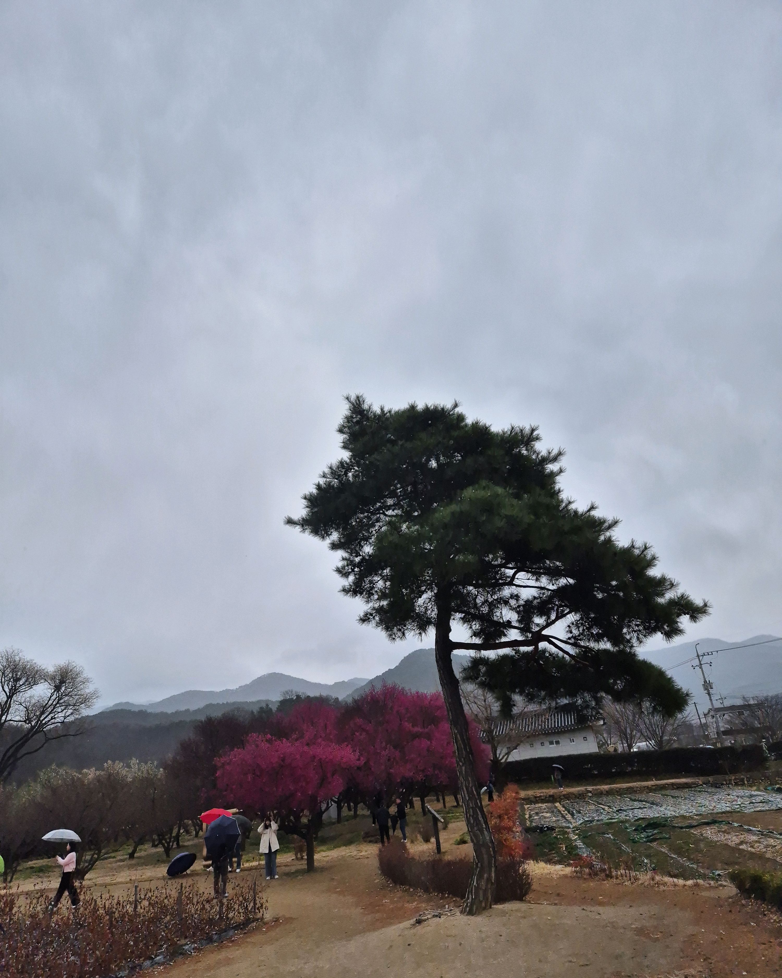 빗속을 달려 남평문씨세거지(인흥마을) 홍매화를 보러갔어요.비오는데도 많은 사람들이 방문을 했더라구요.빛이 없어서 홍매화랑 백매화의 아름다움을 잘살리진 못했네요ㅜㅜ 담주쯤 절정을 맞을듯해요.사진은 잘안나와도 실제론 빗속에서도 진분홍의 아찔한 색감이 너무도 이뻤답니다~^^
