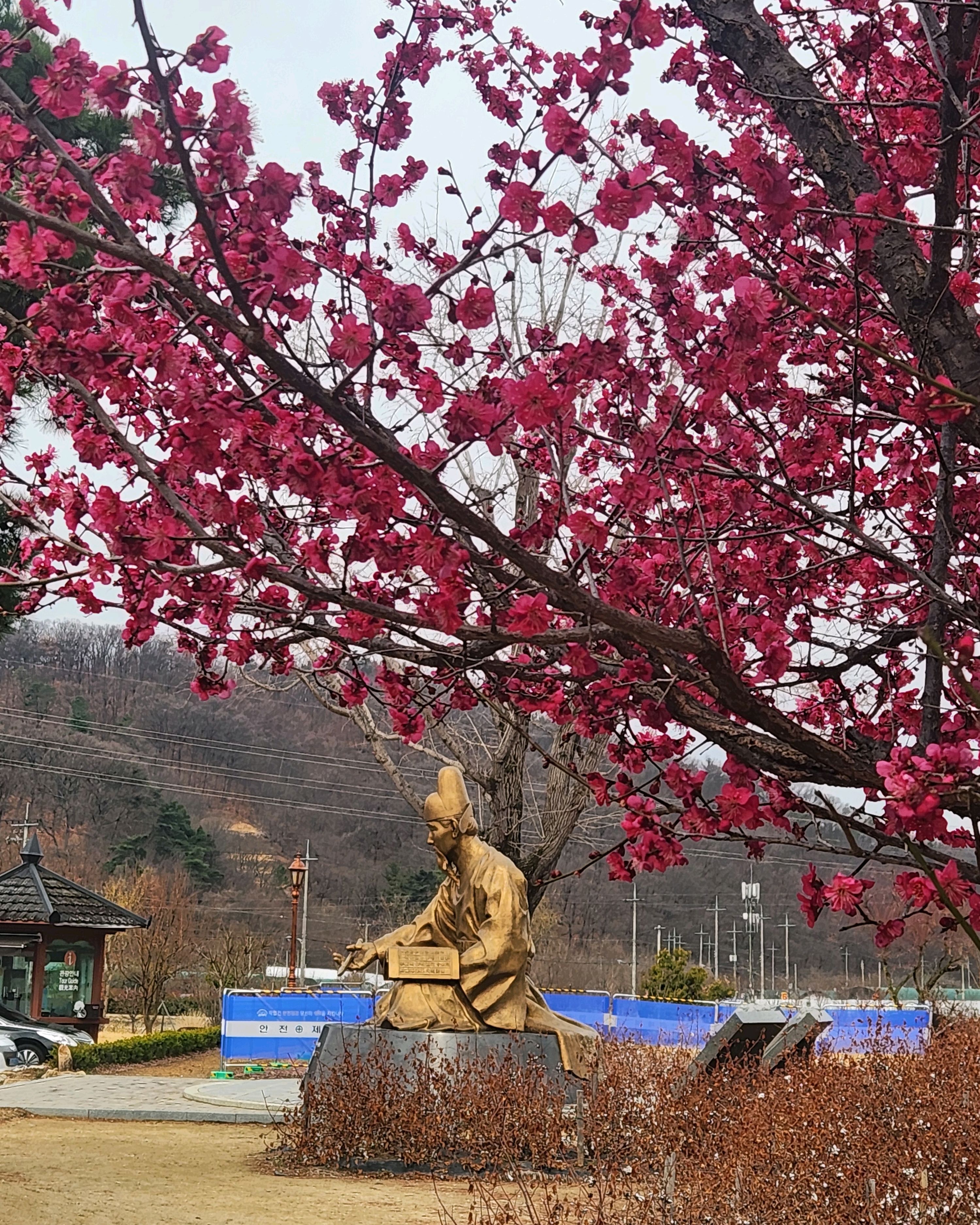 대구에서 가장 먼저 홍매화 꽃을 볼 수 있는 남평문씨 세거지는요. 오픈형 인흥 마을인데요. 현재 주민들이 거주하고 있는 곳으로 너무 이른 새벽이나 늦은 밤에 방문하는 건 삼가해 주시면 좋을 것 같아요. 홍매화는 ♡현재 10%로 개화된 상태이고요. 다음 주나 2주 후에 가면 더욱 풍성한 사진을 찍을 수 있을 것 같아요. 포토스팟 세 곳을 말씀드리자면 입구에 문익점 선생 동상 바로 옆 , 매화꽃밭을 지나서 광거당 쪽으로 올라가면 있구요. 문희갑 전 ,대구 시장에서도 만나볼 수 있답니다. 만차시에는 바로 옆에 50 m 만 이동하면 제 2 주차장이 있으니 참고하세요♡