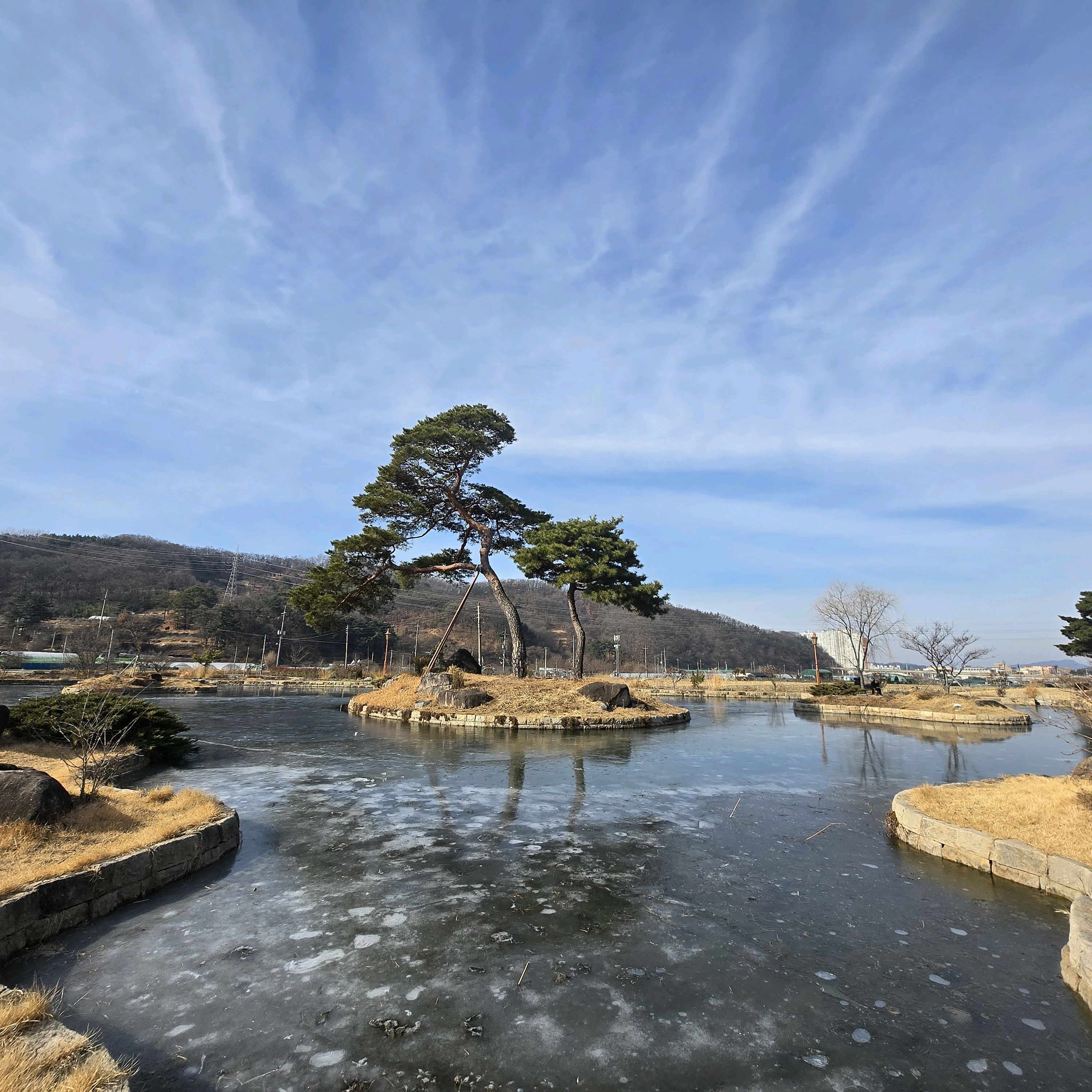 홍매화가 빨갛게 분홍빛으로 펴있고 작은 연못 소나무도 멋지고 걷기도 좋아요