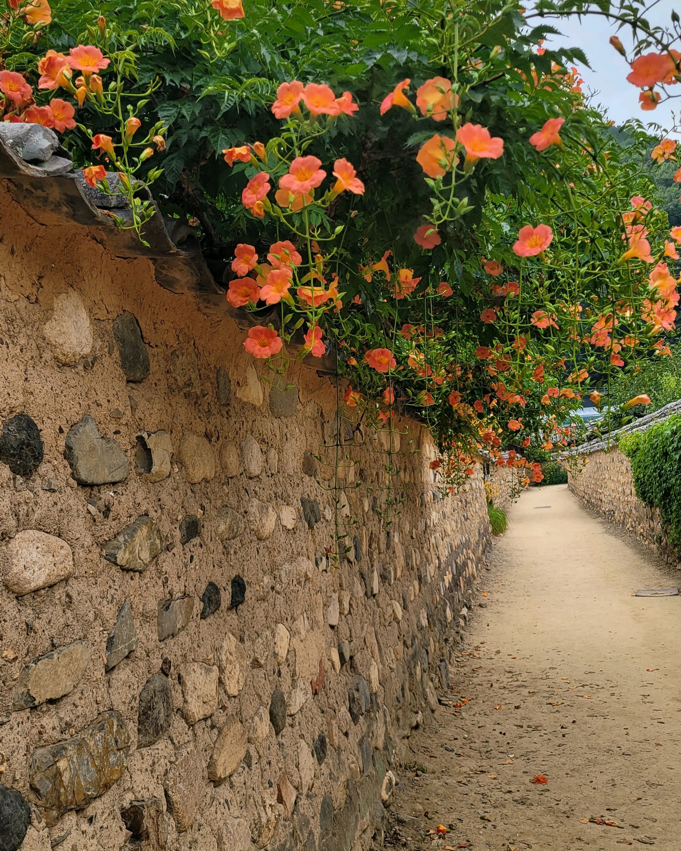 남평문씨본리세거지도 마찬가지로 능소화를 좋아하시는 사진가들이 자주 찾는곳인데요. 이곳은 문익점의 목화씨 유래지로도 유명한 곳이예요. 7월 초 이 계절이 되면 골목에는 멋드러지게 능소화가 피는데요. 고택과 오래전 타임머신을 타고 도착한듯한 고풍스런 흙담길에 곱게 핀 분홍빛 능소화는 너무 멋드러진 곳입니다.