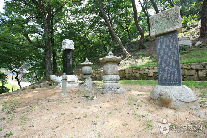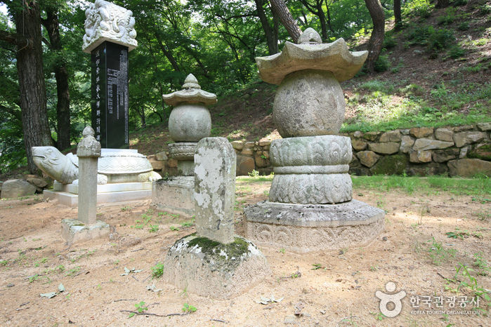 팔공산 파계사 옛 진입로에 위치하고 있으며 건립 연도는 1648년(인조 26년) 3월, 회진당 원의대사를 기리기 위해 세워졌다. 비신은 원규형으로 높이 63cm, 폭은 29cm, 두께 10cm의 화강석이다. 비부는 높이 지상 16cm, 가로 59cm, 세로 49cm 타원형의 화강석으로 구성되어 있다. 글씨를 알아볼 수 없을 정도로 심하게 마모되고 비신에 큰 균열이 나 있다.