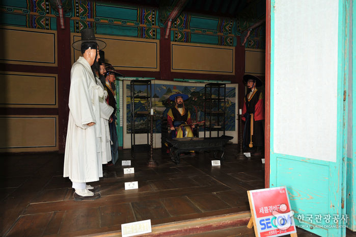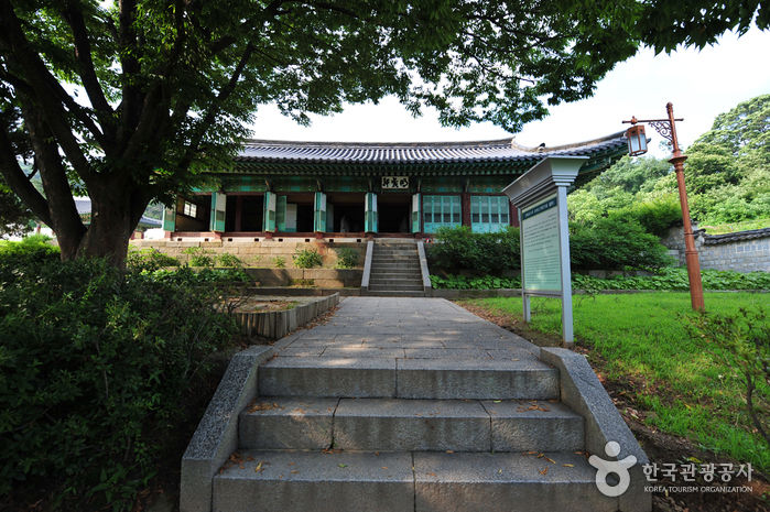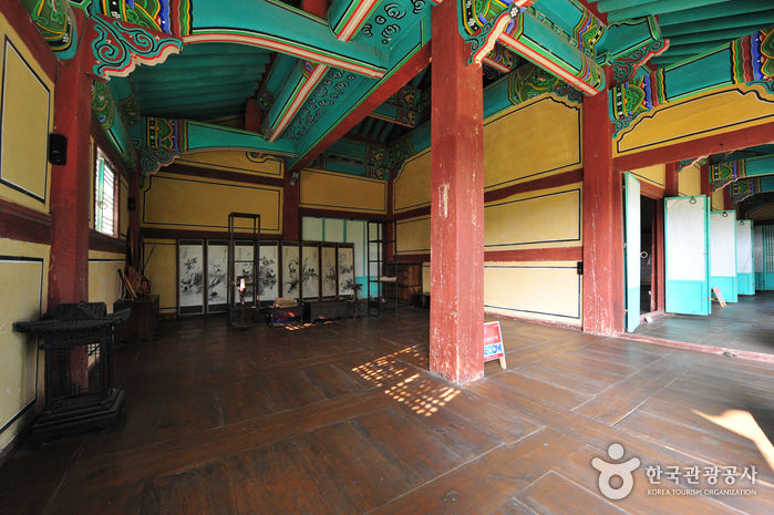 강화 유수부 동헌은 오늘날의 군청과 같은 관아 건물이다. 조선 후기 강화에는 개성, 수원, 광주와 함께 특별행정구역인 유수부를 설치하고 종2품 당상관인 유수를 파견하였는데, 유수가 집무를 보던 중심 건물이 강화 유수부 동헌이다. 조선 인조 16년(1638)에 유수 김신국이 개수하였고, 영조 45년(1769)에 유수 황경원이 현문관이라 이름하였다. 여러 차례에 걸친 개조로 원형은 남아있지 않다. 앞면 8칸, 옆면 3칸의 규모로 지붕 옆면이 여덟 팔(八)자 모양인 팔작지붕 집이다. 당시 명필이며 학자였던 백하 윤순(1680∼1741)이 쓴 명위헌과 이관당의 현판이 걸려있다.