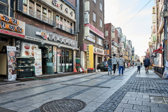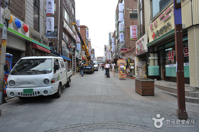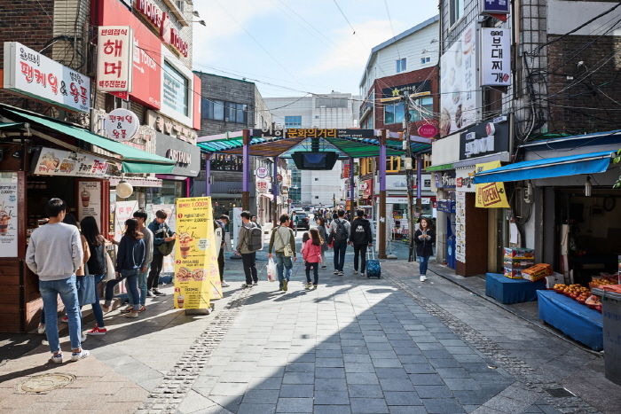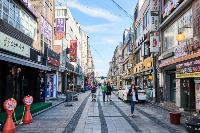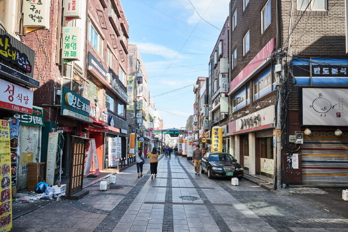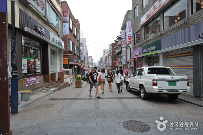 예쁜 카페, 길거리 음식, 디저트 가게 등 먹거리가 다양하다. 그뿐만 아니라 노래방, 당구장, 보드게임방, 오락실 등 놀 거리가 많아 대학생들로 붐빈다. 덕분에 젊은이들의 활기가 가득 찬 곳이기도 하다.