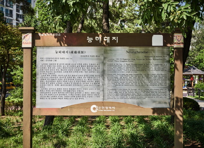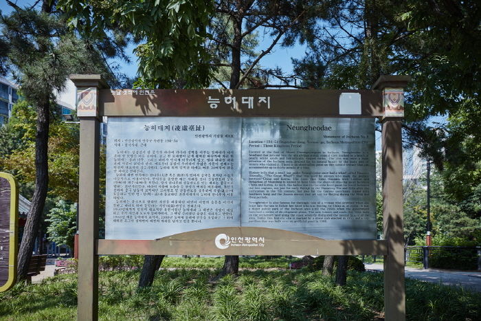 인천 서구 옥련동(玉蓮洞)에 있는 옛 선착장. 능허대는 백제가 중국 동진과 통교를 시작한 근초고왕 27년부터 옹진으로 도읍을 옮긴 개로왕 21년(475)까지 사신들이 중국을 왕래할 때 출발했던 나루터가 있던 곳이다. 백제와 동진이 통교했던 당시의 우리나라 정치 형세는 백제가 고구려, 신라와 적대관계에 놓여 있었고, 중국도 남북조로 나뉘어 서로 대립하고 있었다. 이러한 대립 정세 속에서 주로 남조와 통교하고 있었던 백제 사신들은 중국을 왕래할 때 적대 관계에 있으면서 북조와 통교하고 있던 고구려를 거쳐 가야 하는 육로를 이용하지 못하고 이곳 능허대 밑 한나루를 출발하는 산동반도의 등주, 내주에 이르는 해로를 이용할 수밖에 없었다.