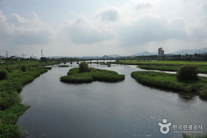 영산강 권역의 영산강 수계에 속하며, 영산강의 제1지류이다. 국가하천, 지방1급하천, 지방2급하천으로 나누어져 있다. 장성국 북하면에서 지방2급하천이 시작되고, 이후 북하면 용두교에서 지방1급하천으로 바뀌며, 광주광역시로 흘러들어 광산구 동남부를 관통한 다음 광산구 삼도동에서 평림천과 합류하여 국가하천으로 바뀌어 유계동에서 영산강으로 흘러든다.