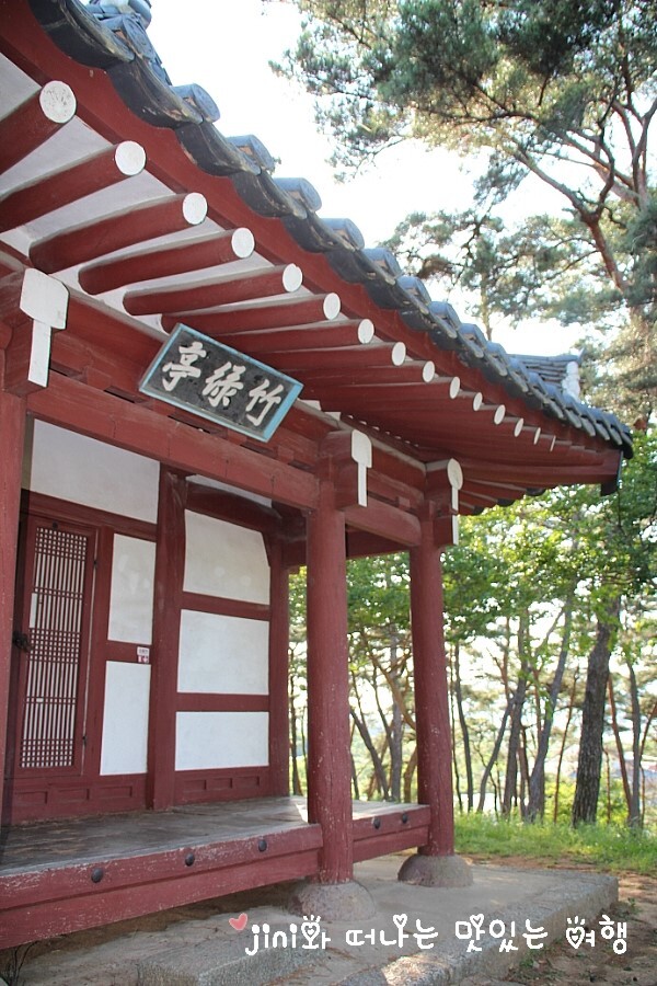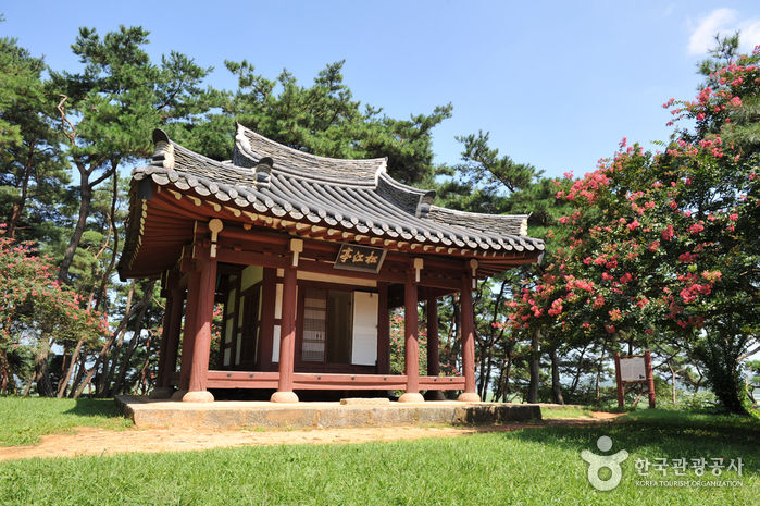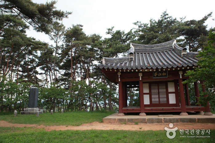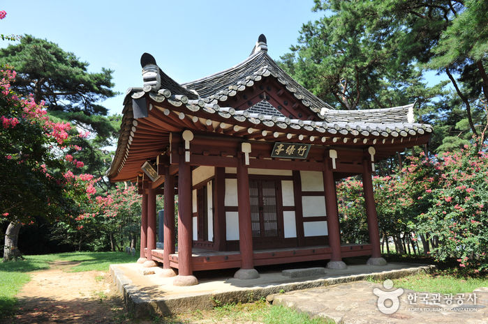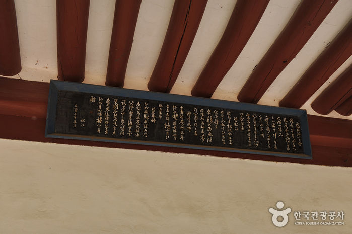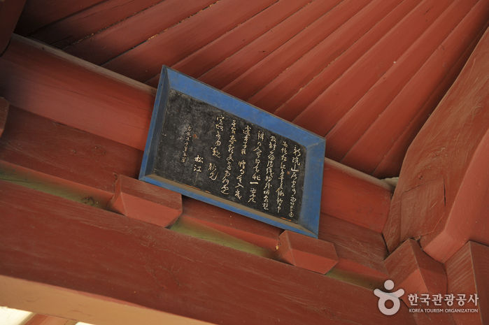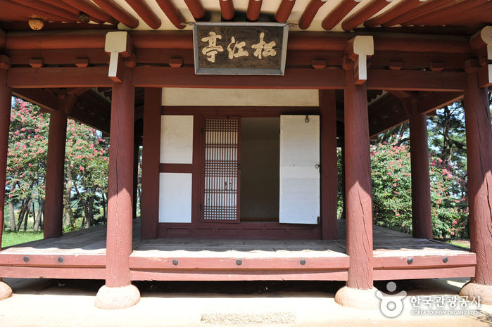 정철은 이곳에 머물면서 식영정을 왕래하며 사미인곡과 속미인곡을 비롯하여 많은 시가와 가사를 지었다. 사미인곡은 제명 그대로 연군지정을 읊은 노래이다. 그 기법은 한 여인이 남편을 이별하고 사모하는 정을 비유해서 읊은 것인데 송강 자신의 충정을 표현한 노래라 하겠다. 심각한 실의에 빠져 송강은 세상을 비관했고 음주와 영탄으로 이곳에서 세월을 보냈다. 정각 바로 옆에는 사미인곡 시비가 있으며, 현재의 건물 역시 그때 중수한 것이다.