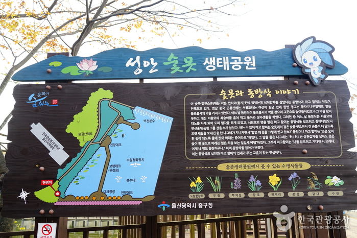 숯못 생태공원은 울산광역시 중구에 위치하고 있다. 숯못에는 ‘삼천갑자를 살았던 동방삭’과 그를 잡았다는 ‘마고할미’ 전설이 전해온다. 이 숯못은 작은 반티이못(함지못)이라 할 정도로 작은 못이었으나 지금은 시의 지원을 받아 확장을 하여서 못다운 면모를 갖추고 있다. | |||||||||||||||||||||||