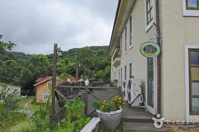 마을에 들어서면 여러 개의 글램핑장이 깔끔하게 배치되어 있다. 글램핑장은 정기 휴무일인 월요일만 제외하면 항시 운영하고 있다. 바비큐에 필요한 용품과 전자레인지, 가스버너, 에어컨, 냉장고 등이 구비되어 있다. 글램핑장 뒤편으로 가면 화장실과 샤워부스가 준비되어 있다. Her’B(허비) 카페는 허브마을 언덕에 위치하여 넓은 테라스에서 펼쳐져 있는 전경을 계절마다 다른 느낌으로 감상하실 수 있으며 전문가가 로스팅 한 특별히 맛있는 일품인 커피와 매일매일 갓 구워낸 빵으로 안성에서 소문난 맛집으로 사랑받고 있는 공간이다. 또한 허브티와 족욕을 함께 즐길 수 있는 아로마테라피 족욕 카페가 있다. 히말라야산 소금과 한방 약제 그리고 천연 아로마 오일을 첨가하여 지친 발과 몸의 피로를 풀어줄 수 있다.