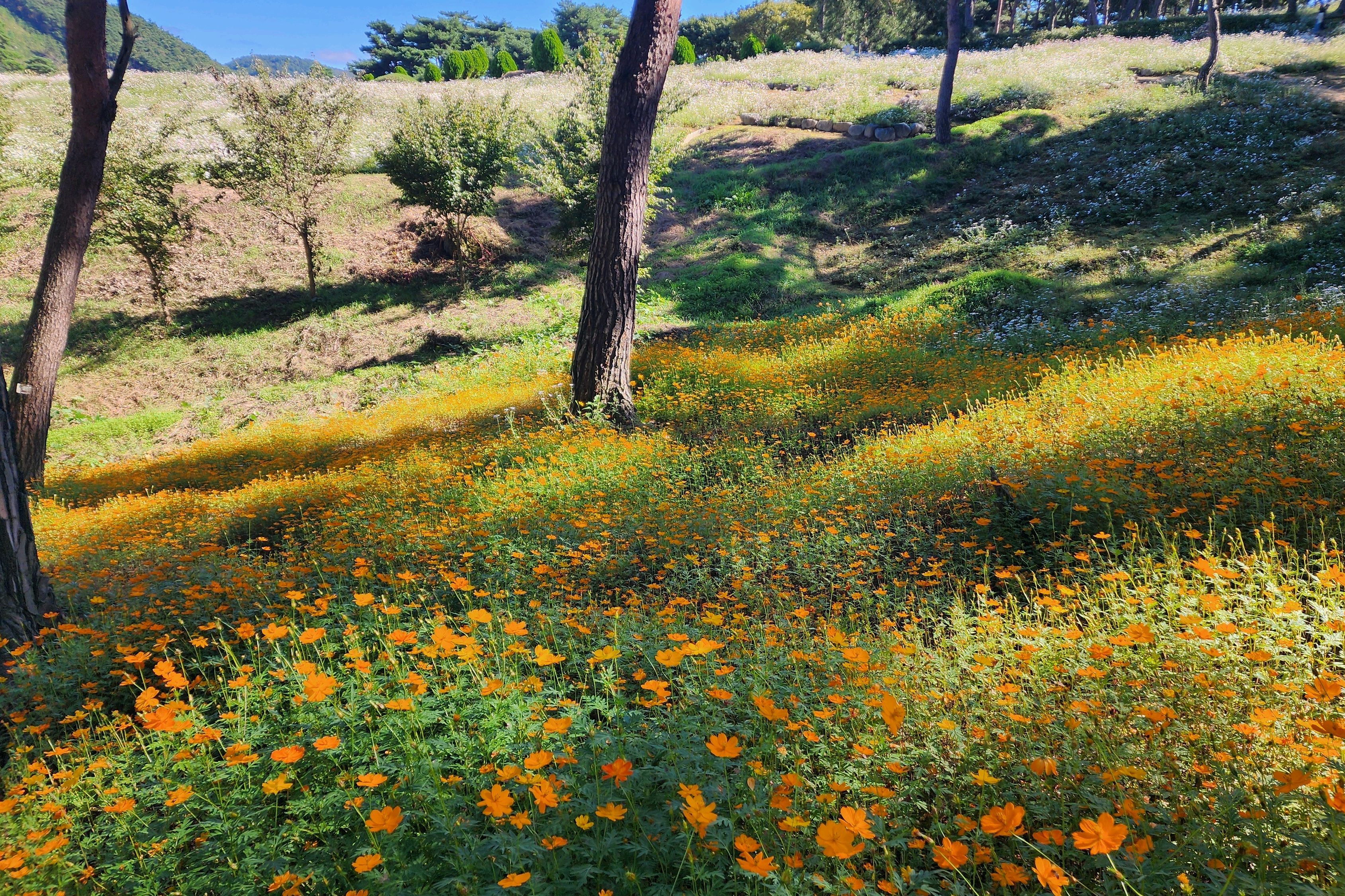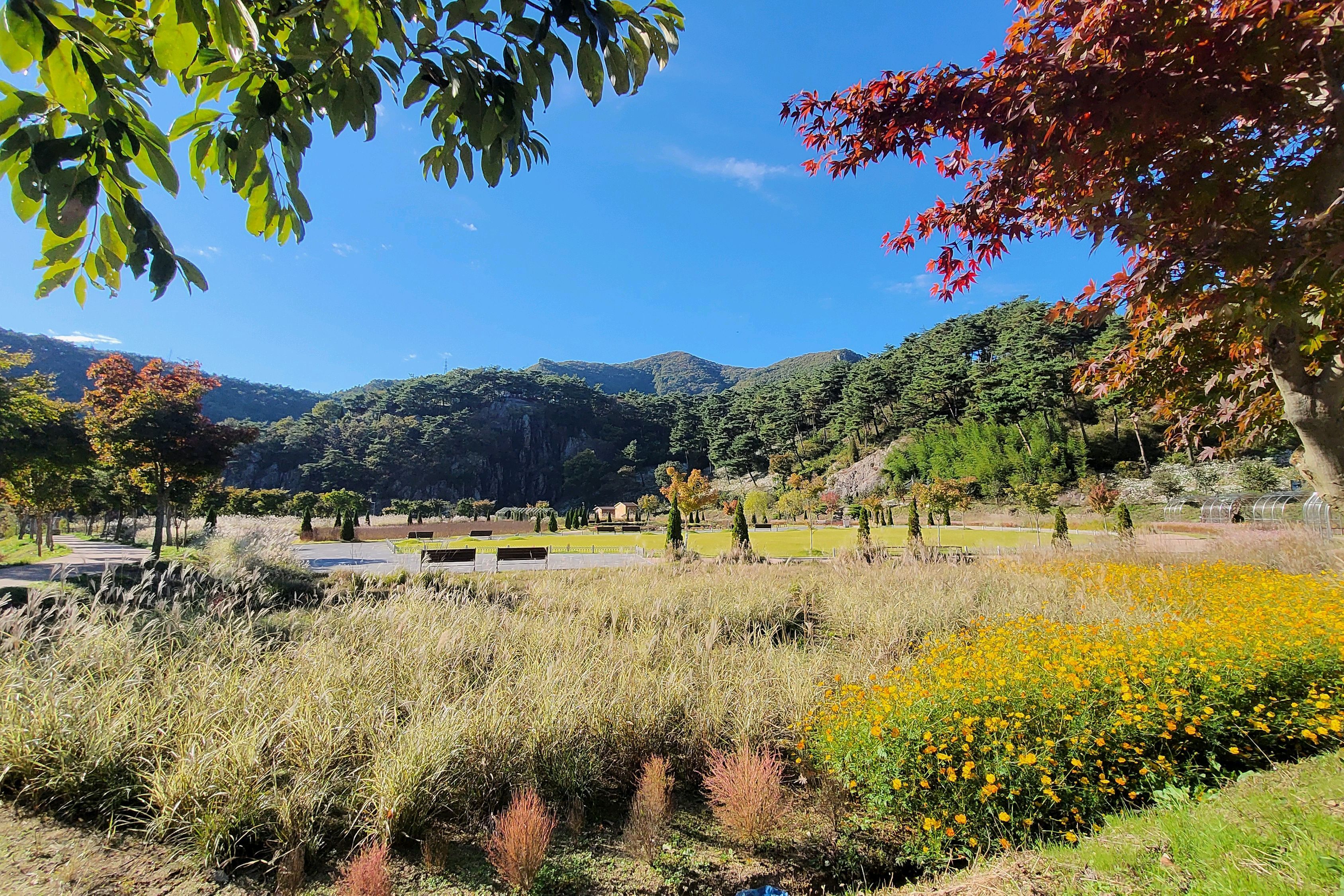 |  진짜 산책로가 넓고 꽃이 예쁘게 잘 피었어요. 구절초는 축제가 끝나서인지 이제 좀 지고 있고 백일홍이랑 코스모스는 진짜 예쁘더라고요. 그래도 군데군데 아직 구절초 많이 피어있고 정원이 엄청 크게 조성돼있어서 볼거리도 많고 좋아요.