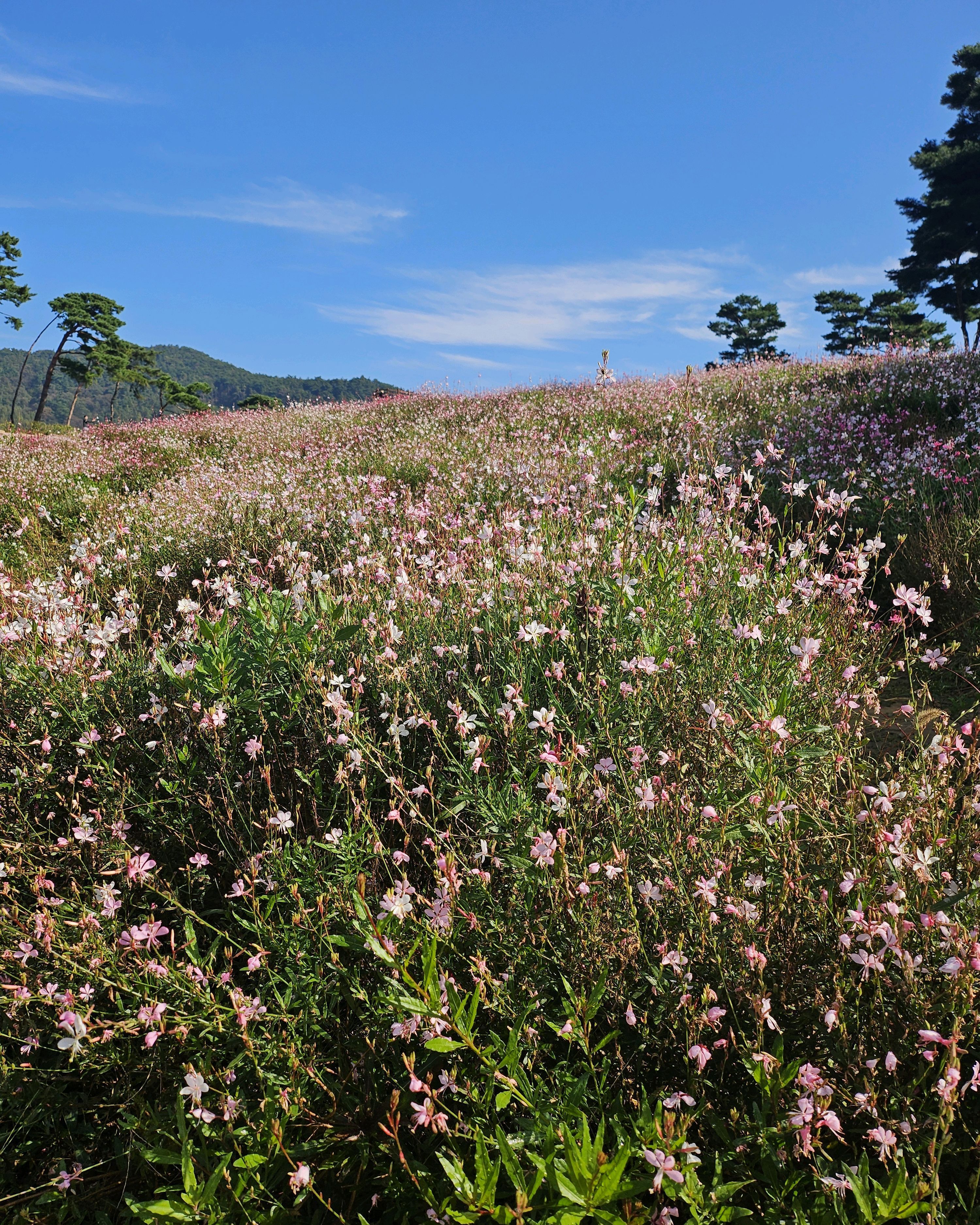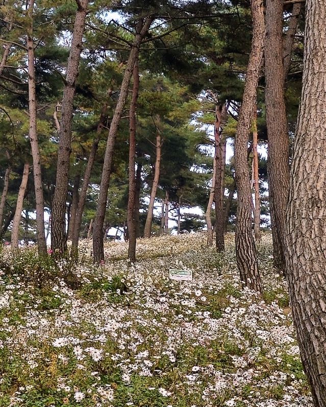 소나무 동산 아래 구절초랑 핑크꽃이