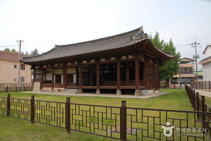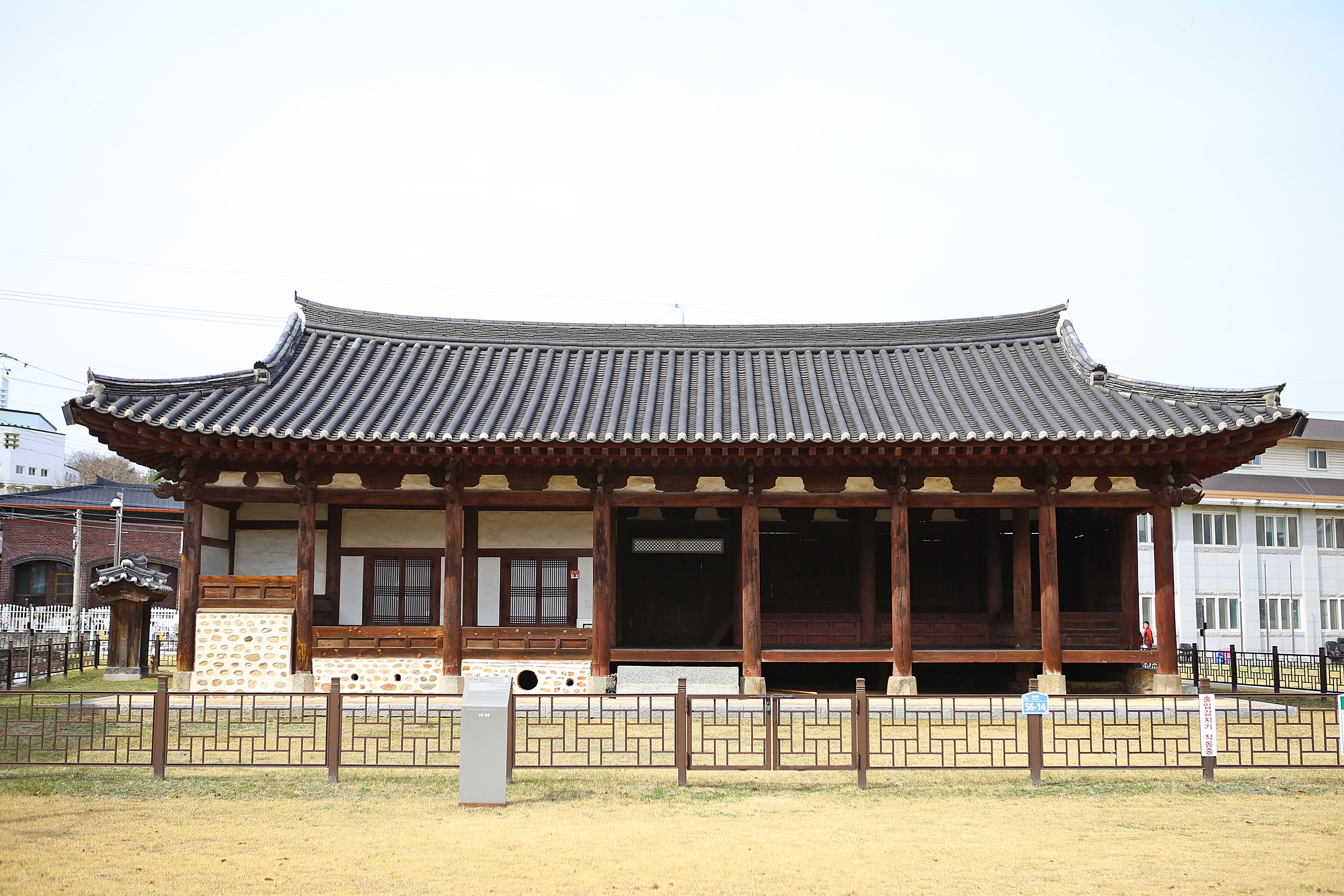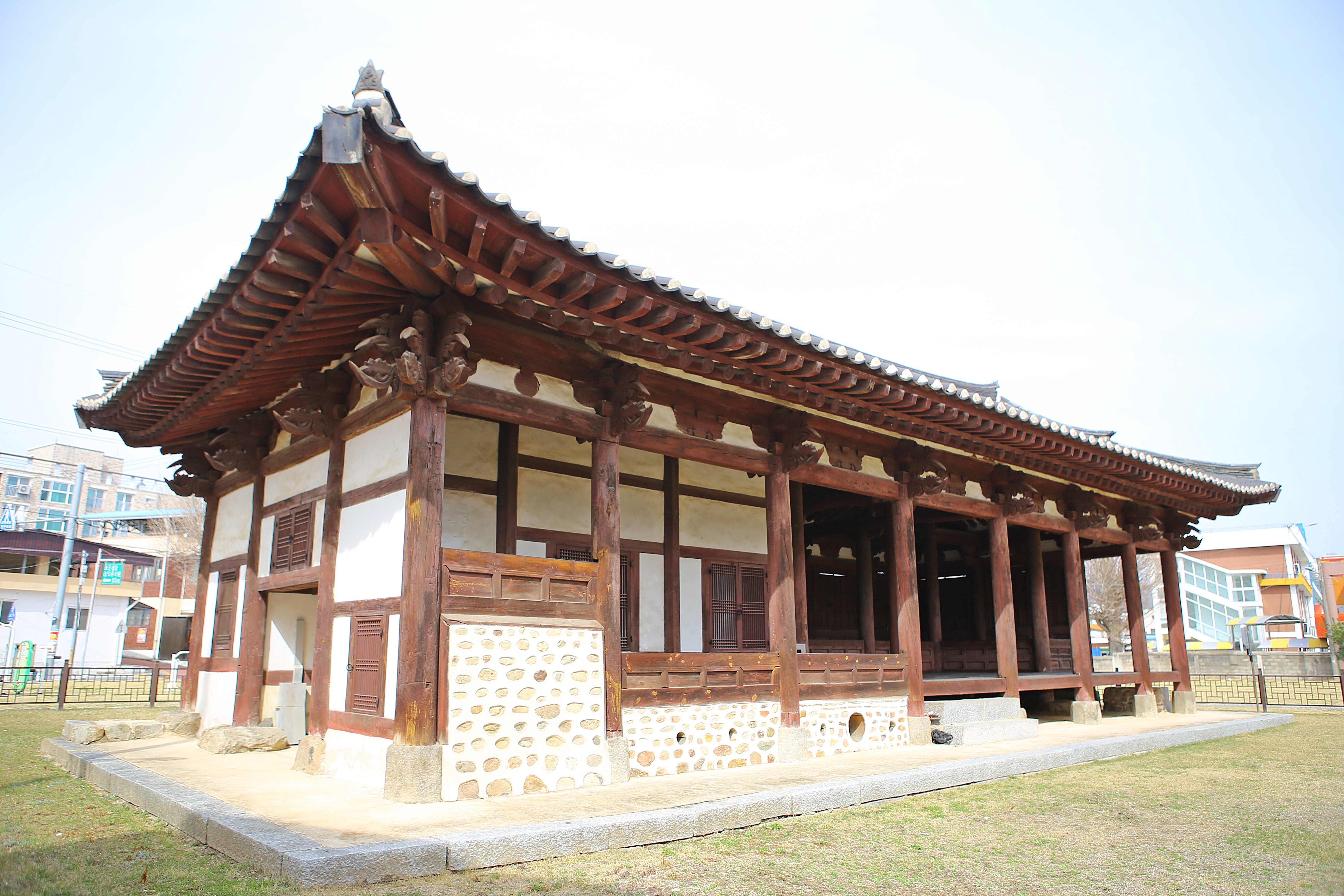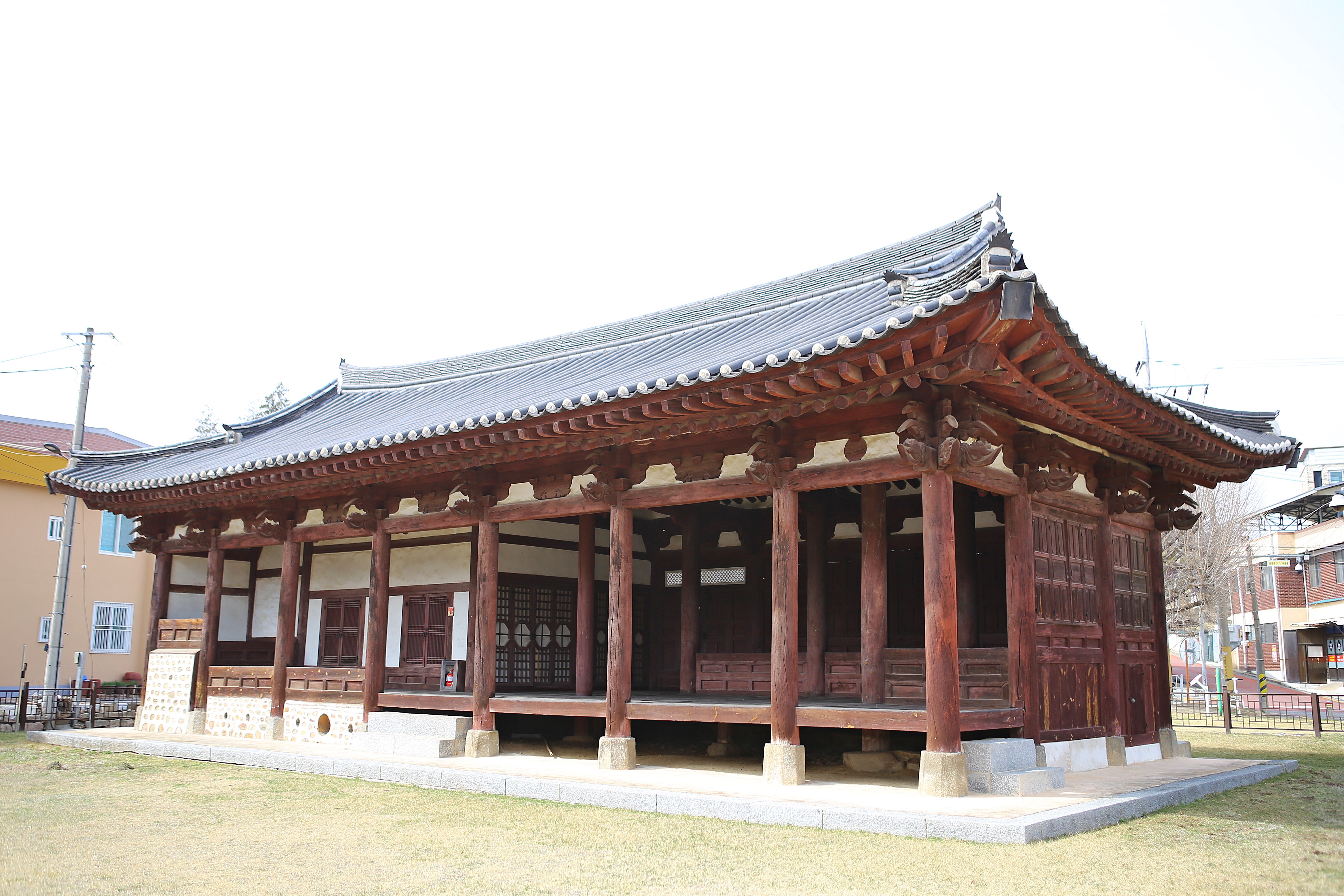 건물은 정면 7칸, 옆면 3칸 겹처마 팔작지붕의 익공계 건물로 목조기와집이다. 내부는 평면이 특징 있게 꾸며져 있다. 전면 1칸은 모두 마루이고 오른쪽 4칸은 대청이며, 왼쪽 3칸은 온돌방을 두었다. 대청 중 동쪽 1칸과 후면을 높게 해서 누마루를 만들었는데, 조선 후기 동헌의 한 특징으로 태인동헌과 함께 다양한 공간구성과 창호의 장식이 돋보인다. 1983년 원형으로 복원하여 오늘에 이르고 있다. 동헌 앞에는 관내 각지에 흩어져 있던 역대 현감 또는 군수들의 송덕비 또는 선정비 6개를 1988년 옮겨 세워져 있다.