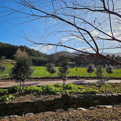 정자에 누워서 편히 쉬었다 가면 좋은 곳입니다. 멀티미디어 룸에서 설명을 듣고 가면 이해하기 좋아요. 떨어진 동백꽃잎이 아주 멋집니다.