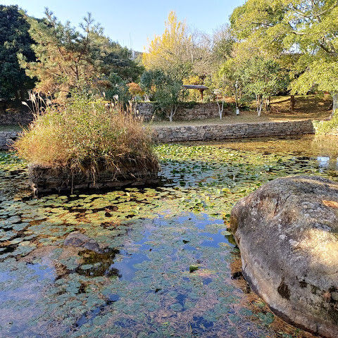 고즈넉한 정자와 연못, 큰 바위와 오래된 나무들의 풍경이 마음을 편하게 해줍니다.