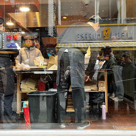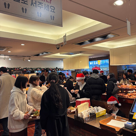 금전 등록기 대기열과 소보로 빵 상자 세트를 요구하는 사람의 열이 섞여있는 것도 혼란 스럽습니다 ...