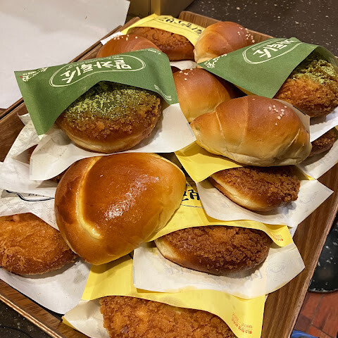 웨이팅 여전히 심한건 유명해서 알고는 있었지만 계산대도 많은 편이라 그런지 대기줄들이 생각보다 빠릿빠릿하게 잘 빠진거같아요~~👍 시그니처 빵인 튀김소보루 맛보는데 너무 맛있었어요~~ 특히 튀소구마!!!! 진짜 진심 강추예요 👍👍👍👍👍✨