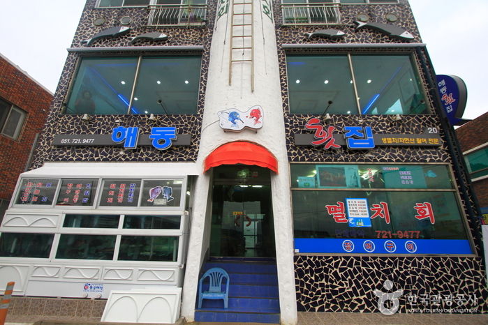 대변항 근처에 위치한 해동횟집은 자연산 멸치회를 전문으로 한다. 창가를 통해 바다를 볼 수 있어 대변항 바닷가의 경치를 보며 식사할 수 있다.