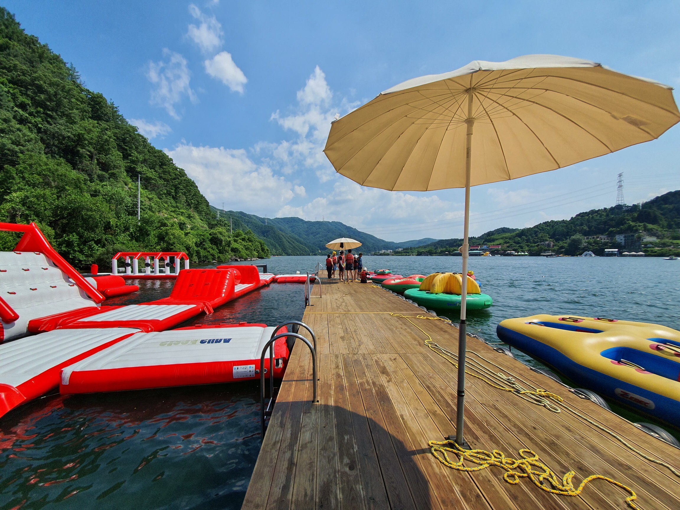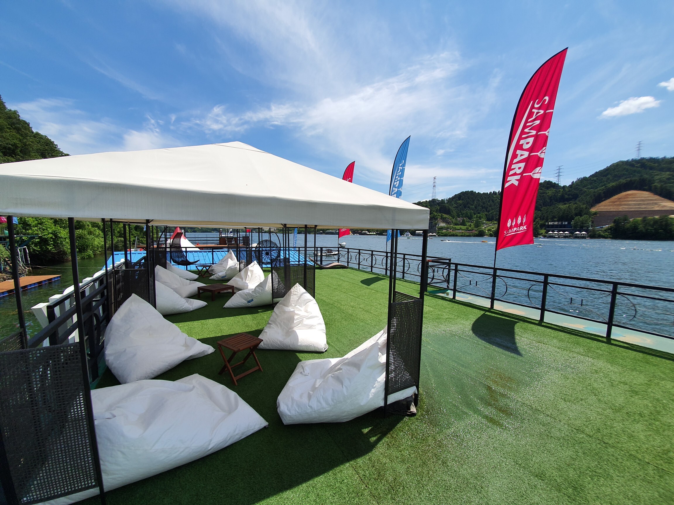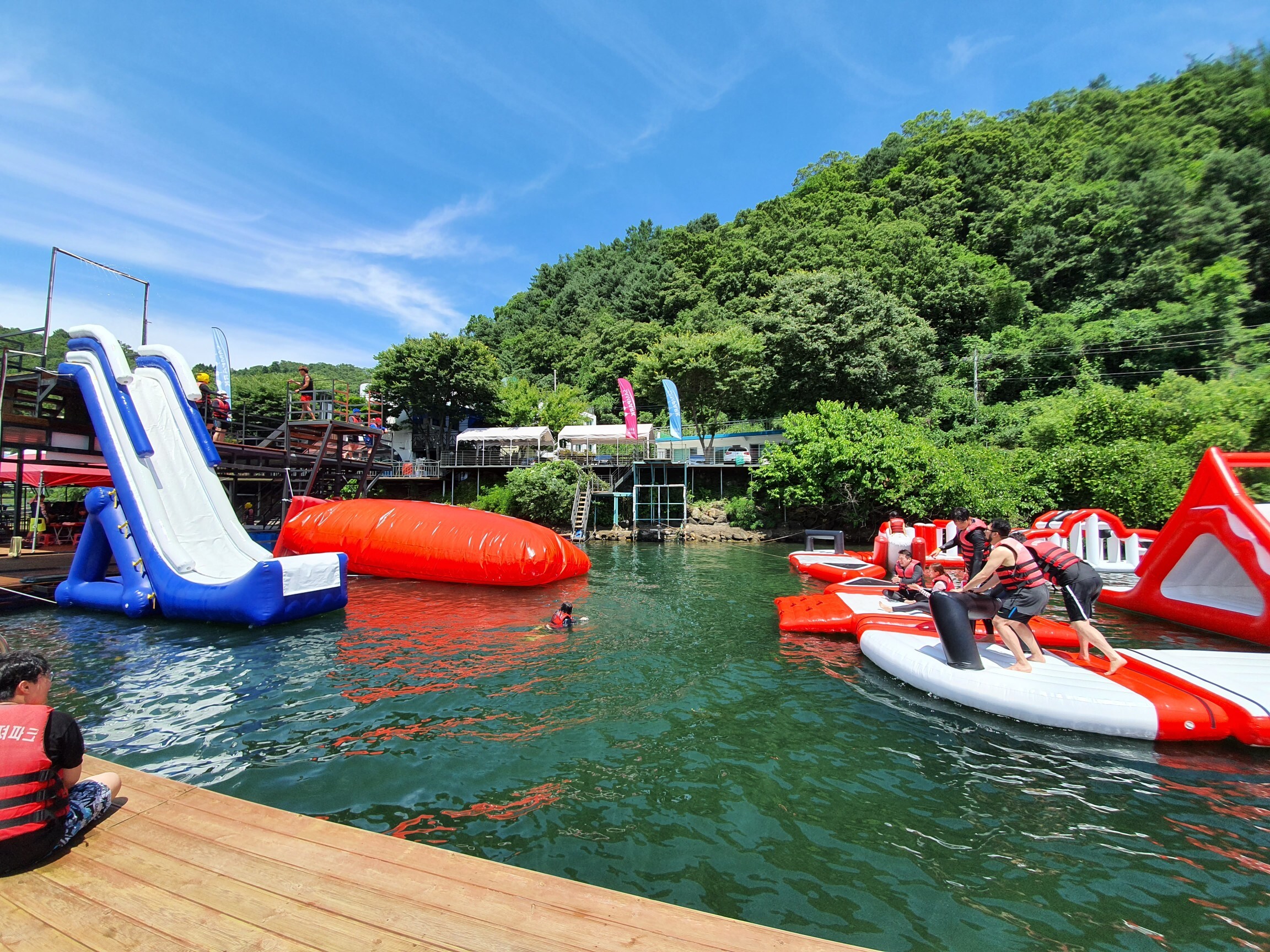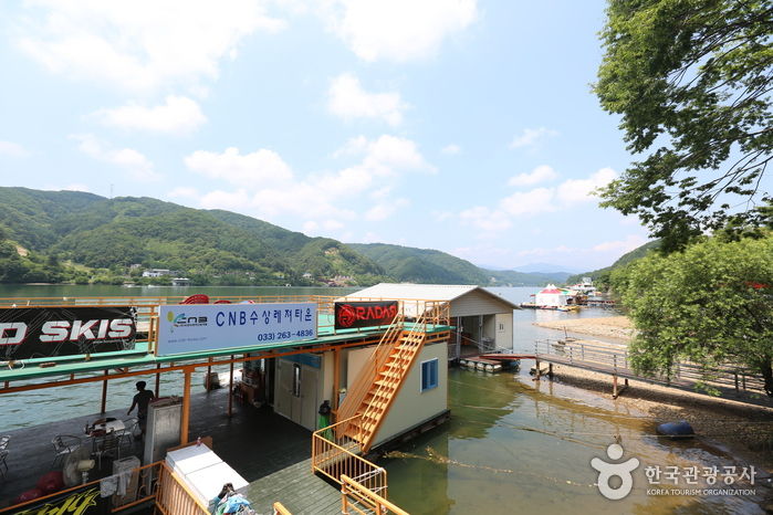 샘마을레저파크는 남이섬이 건너다보이는 북한강변 양지바른 물가에 위치하였다. 가평교와 이어지는 경강교를 건너 우측으로 난 강변길을 따라 내려가며 펼쳐지는 강변 풍경이 절경을 그려낸다. 이곳은 여름 휴양지로 다양한 수상놀이기구 12종을 즐길 수 있다. 또한 행사에 필요한 시설을 갖추고 있어 세미나, 야유회 등 각종 모임이 가능하다. 부대시설로 식당 겸 매점, 풋살장 등이 있어 고객들이 편리하게 이용할 수 있다.