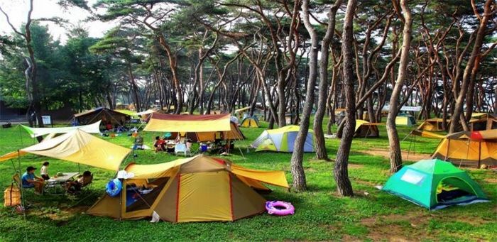 284,000㎡의 부지에서 조성된 송호관광지는 관리사무소를 비롯하여 주차장, 취사장, 화장실, 샤워장, 산책로 등의 시설이 갖추어져 있을 뿐만 아니라 관광객에게 보다 즐겁고 쾌적한 휴식공간과 송호금강물빛다리, 양산팔경둘레길을 연계한 울창한 소나무숲사이에 야영장이 펼쳐져 있다.