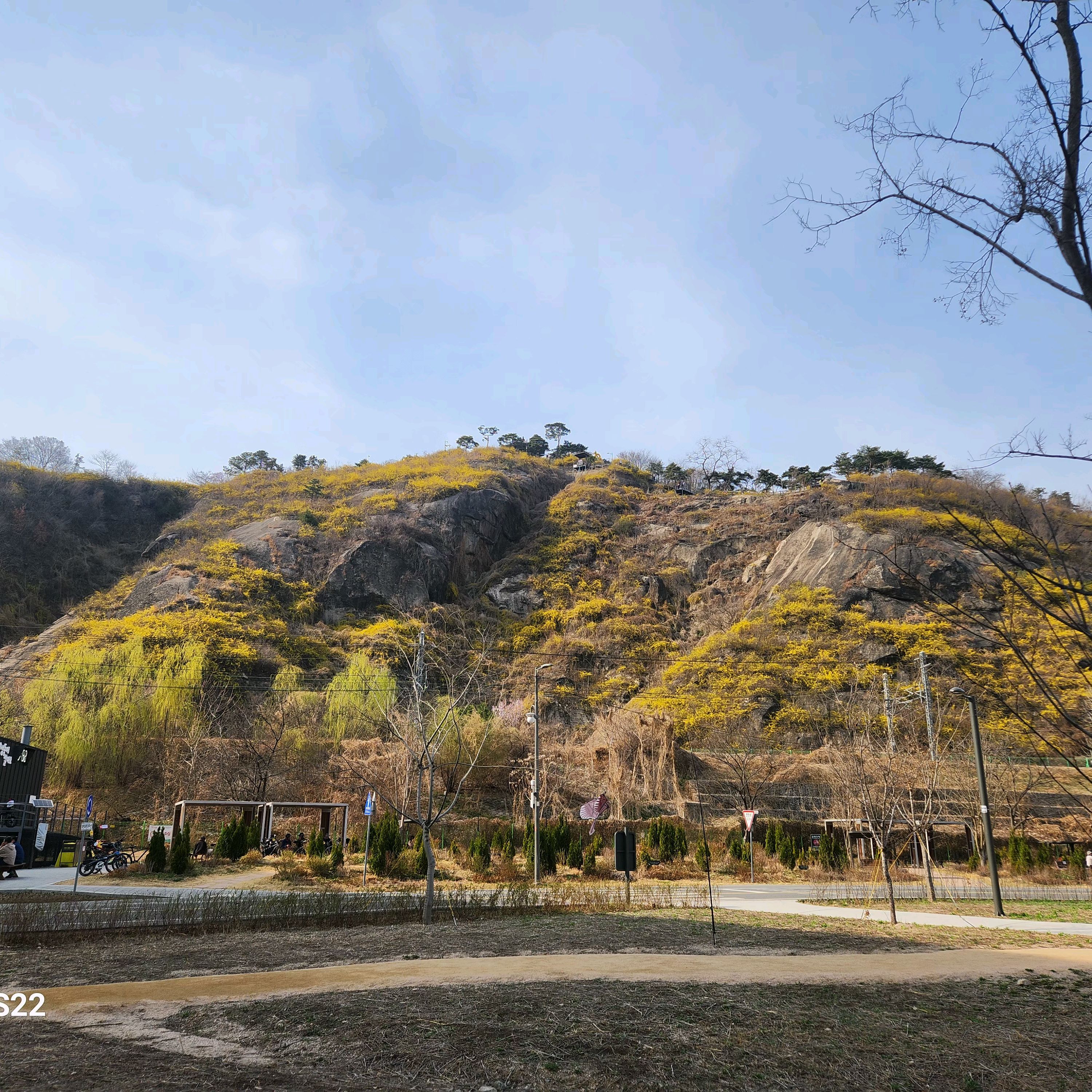 등산이 아니고, 30분정도 공원을 산책한다는 느낌처럼 구경할수 있어요 개나리꽃 나무가 사람 키만큼 자라고 산전체가 노란 개나리로 물든곳은 정말 보기 드문것같아요