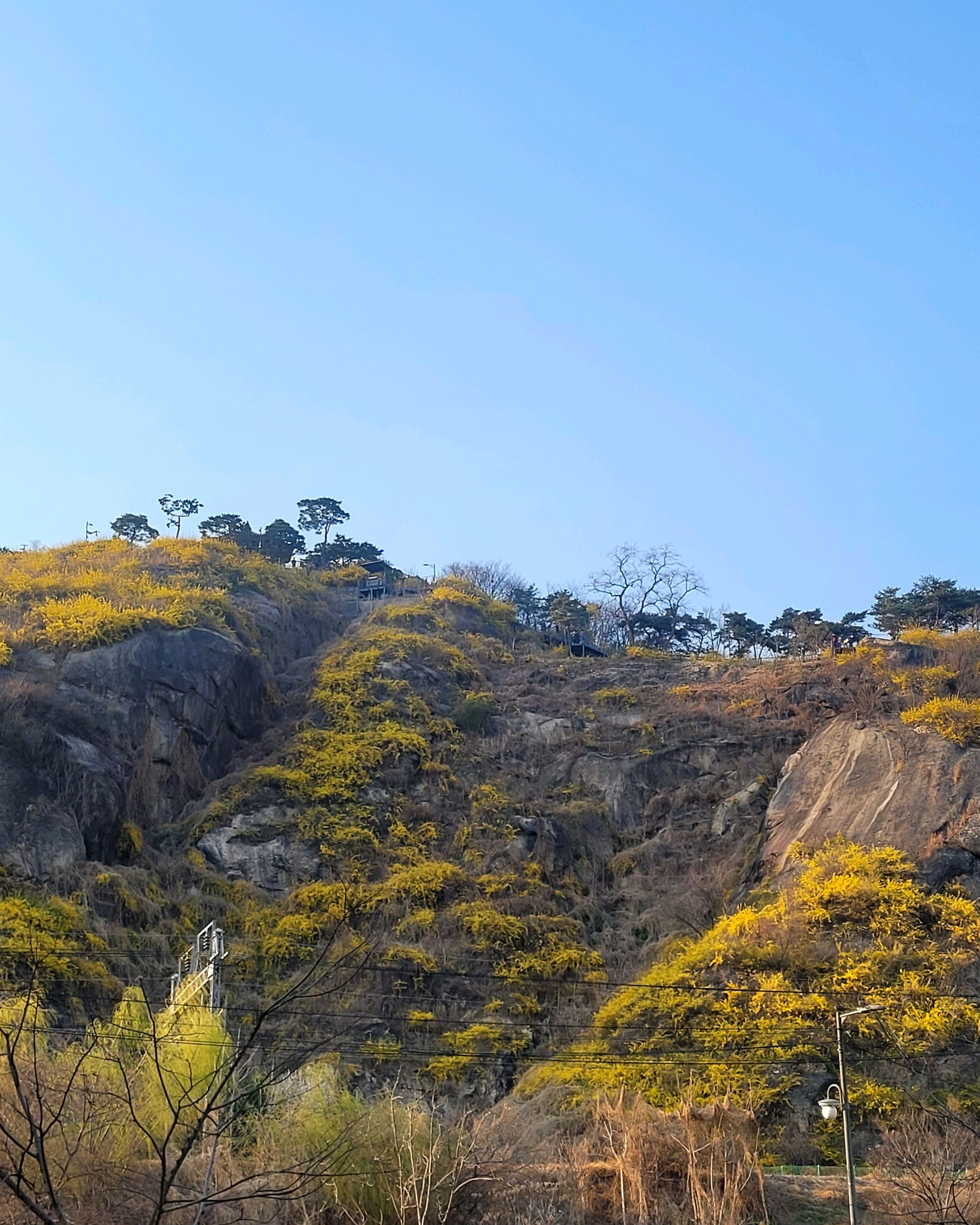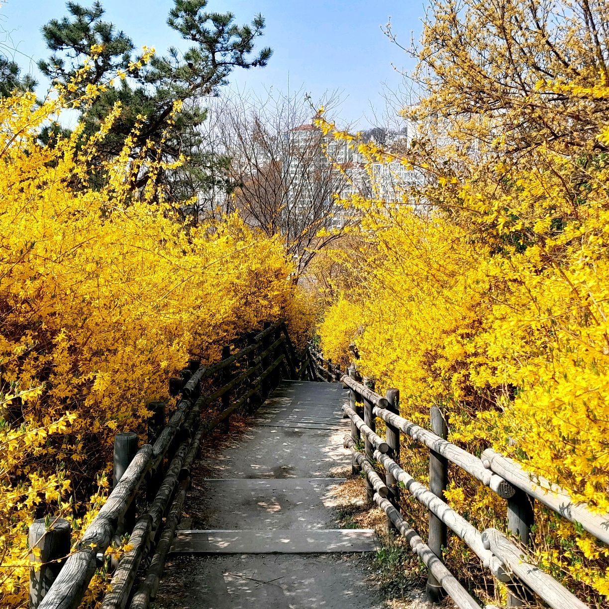 개나리가 벌써 활짝피어서 산책하기 너무 좋은 응봉산이에요.