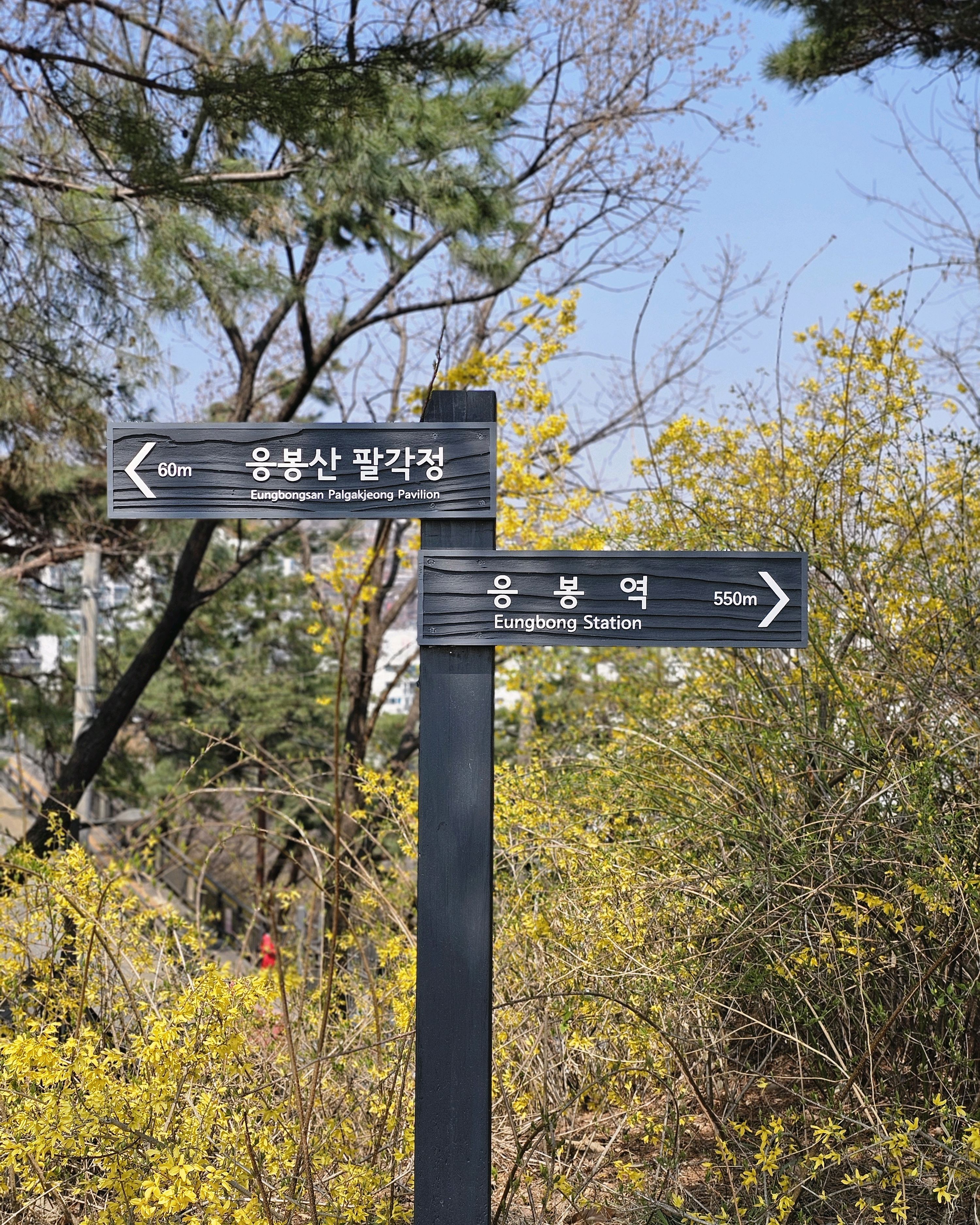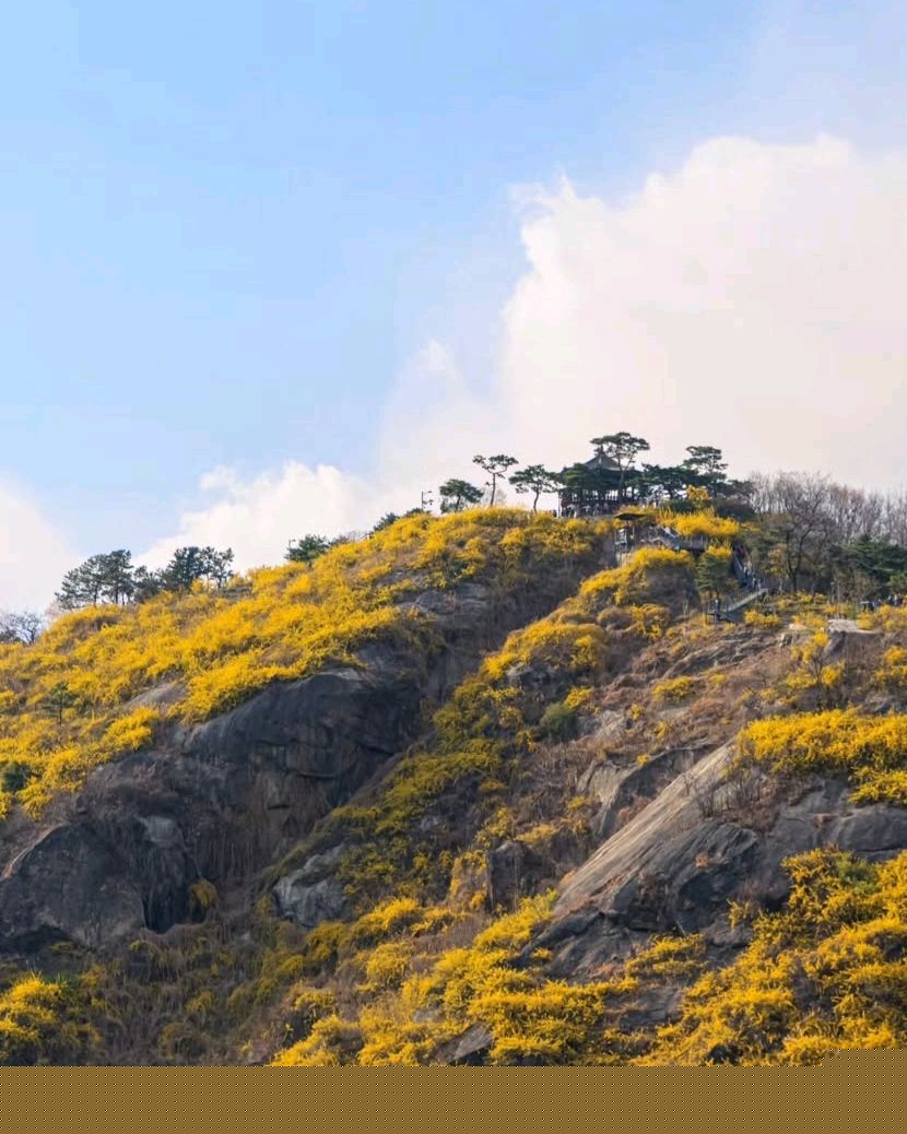 응봉산 개나리축제가 유명합니다. 개나리필때가보면 진짜 눈돌아가게좋아요. 혼자 산책겸 살랑살랑가도 좋아요. 코스가 길어서 운동안하신분을은 살짝숨이찰수도있어요. 낮아보이지반 그래도 산이시까요. 코스를따라 죽~~ 반대편까지 내려가야 뷰가좋아요~~!! 개나리보러 응봉산 추천입니다.