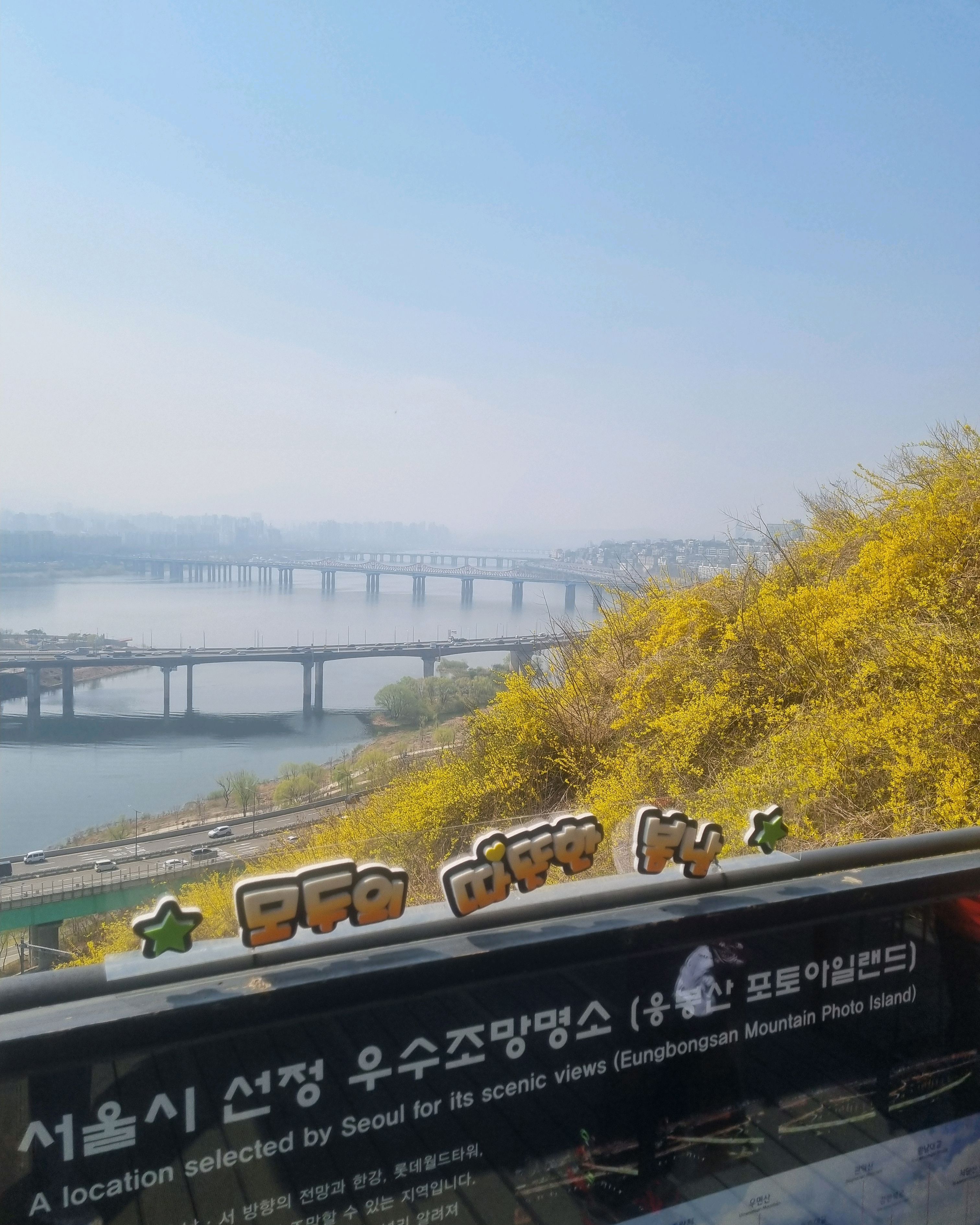노오란 개나리 따라 올라가면 한강뷰가 보이는 응봉산~ 응봉역에서 내려서 팔각정까지 올라갔다가