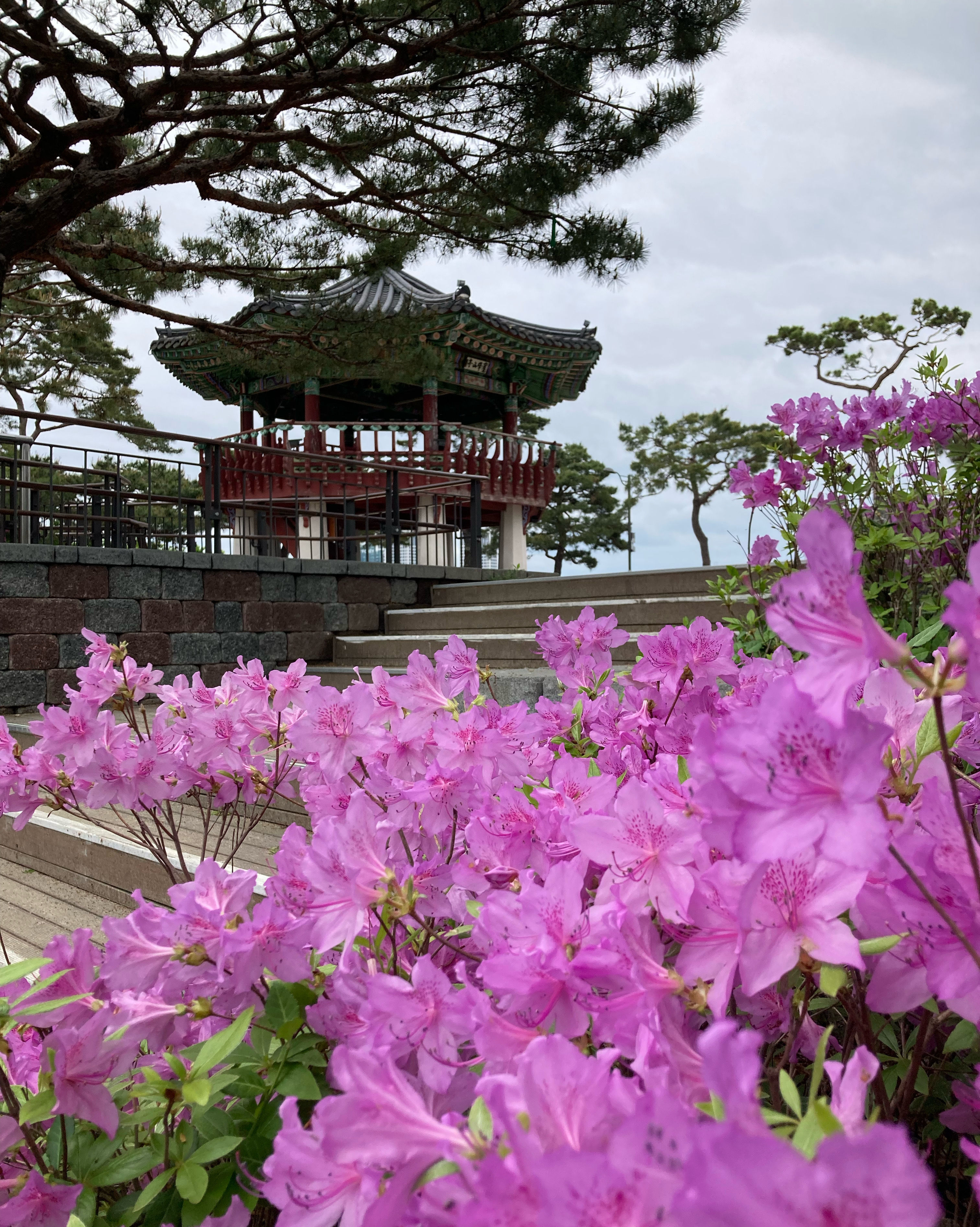 전철 타고 꽃구경 왔어요. 찾기도 쉽고, 계단이라 헥헥거리며 올라갔네요. 아쉽게 팔각정에 못 올라갔다 왔네요.
