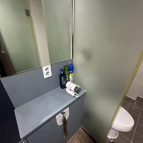 고풍스럽고 아늑한 분위기입니다. 복도를 걷다 보면 큰 기대는 하지 않지만, 객실 자체는 매우 따뜻합니다. 프런트 데스크 직원은 매우 쾌활했고, 저희를 진심으로 반기는 듯했습니다. 근처 식당에서 남은 프라이드 치킨을 가져다 주었습니다. 너무 많아서 다 먹지 못했거든요. 2층 침대 공간이 조금 낮았는데, 저는 키가 180cm인 미국인이라 그 부분은 엉뚱한 생각입니다. 침대는 편안하고 단단했고, 2층 바닥은 난방이 잘 되었습니다. 기본적인 조리 시설, TV, 와이파이가 갖춰져 있었습니다. 냉장고에는 생수가, 수도꼭지에는 정수기가 있었습니다. 몇 군데는 좀 더 꼼꼼하게 청소해야 했지만 전반적으로 매우 편안했습니다. 해변 전망은 근처 다른 건물들에 가려져 있었습니다. 그중에는 식당도 있었습니다. 공항에서 자기부상열차를 이용하면 무료로 갈 수 있는데, 15분 정도 걸린 후 다시 5분 정도 걸어야 합니다. 다시 묵을 생각입니다.