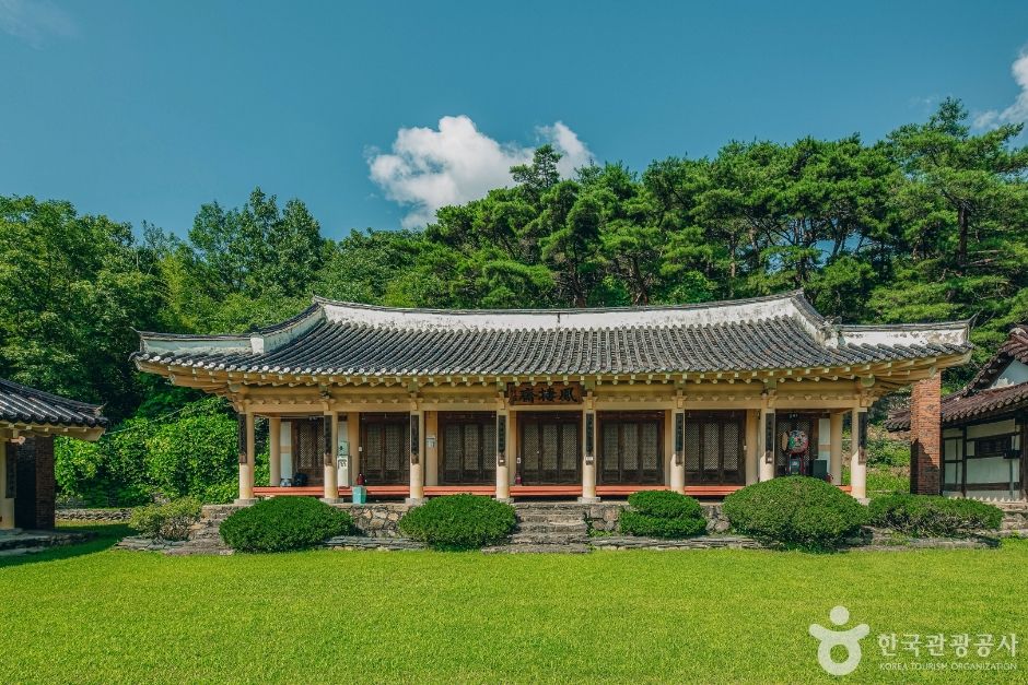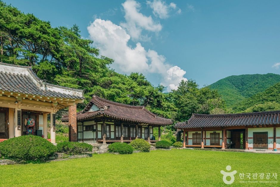 두억행복드림마을은 우리나라 8대 명당이라는 전라북도 완주군 봉서골에 자리한다. 너른 잔디마당과 푸른 산을 배경으로 정면과 좌우에 자리한 큼지막한 기와집이 인상적이다. 마을에서 공동으로 한옥 숙박업과 각종 전통문화 및 자연 체험 프로그램을 운영하는데, 그 중 행복드림한옥은 교육용 체험관이자 숙박장소로 사용된다. 객실은 아담하고 깔끔하며, 마당과 산을 향해 난 들문을 모두 열면 아름다운 경관을 한눈에 담아갈 수 있다.