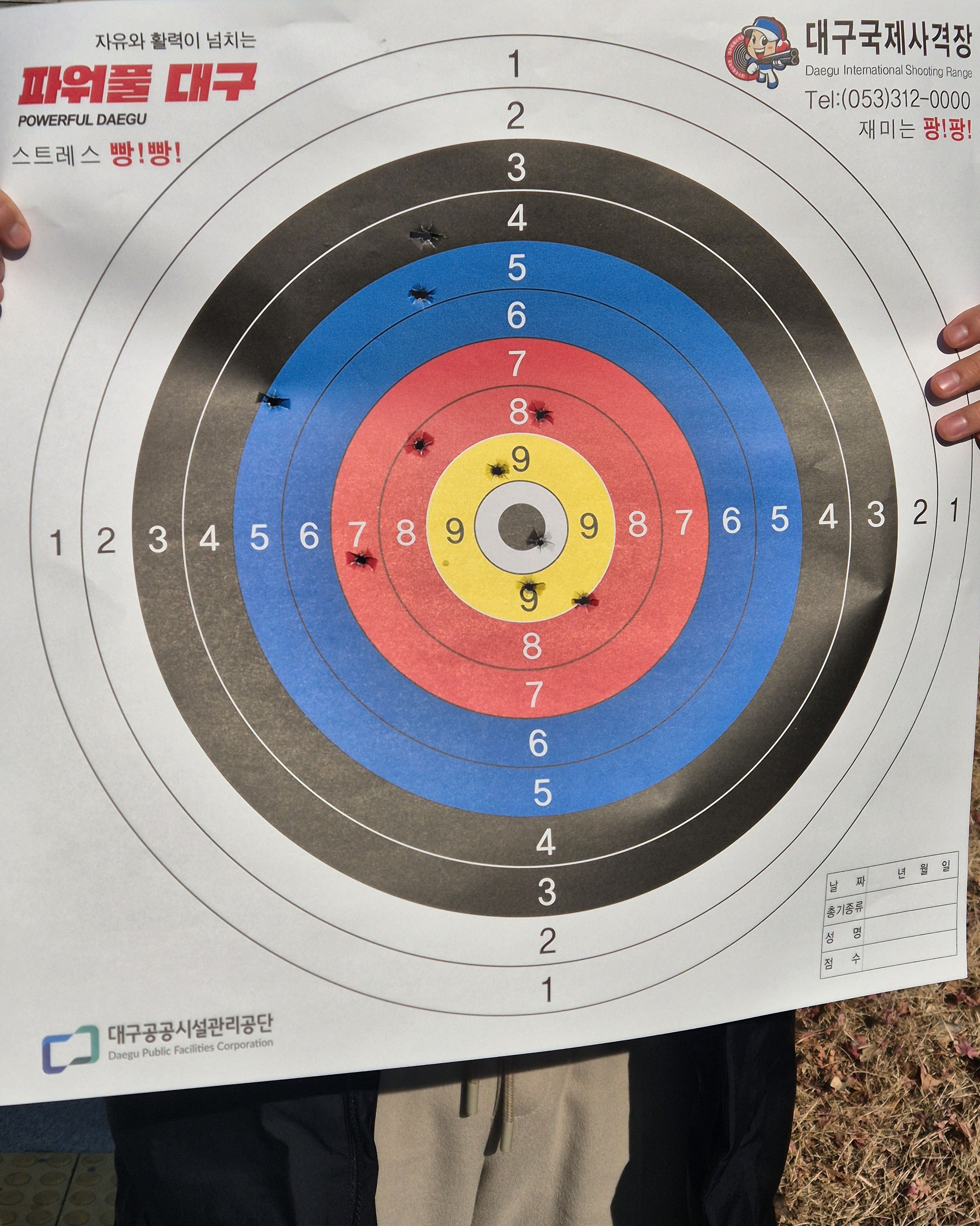 대구 국제사격장에서 클레이, 권총(9mm, 38구경) 체험을 했다. 영화에서 본 것과 다른 실제 사격!! 총이 무겁고 진동이 컸다... 그리고 소리도 엄청 크고ㄷㄷ 무서움