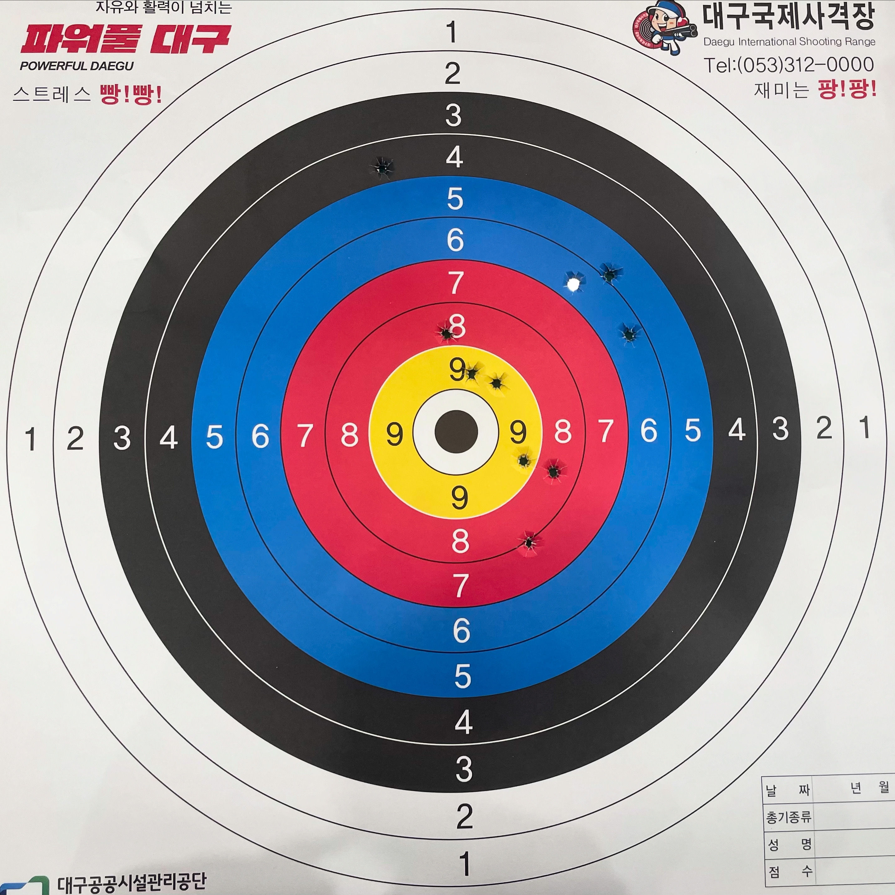 첫 사격! 10점을 못쏜게 아쉽긴하지만 . .