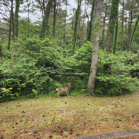 잔디광장에 노루 가족들이 놀러와서 풀을 뜯고 놀고 있는 모습도 보았어요~