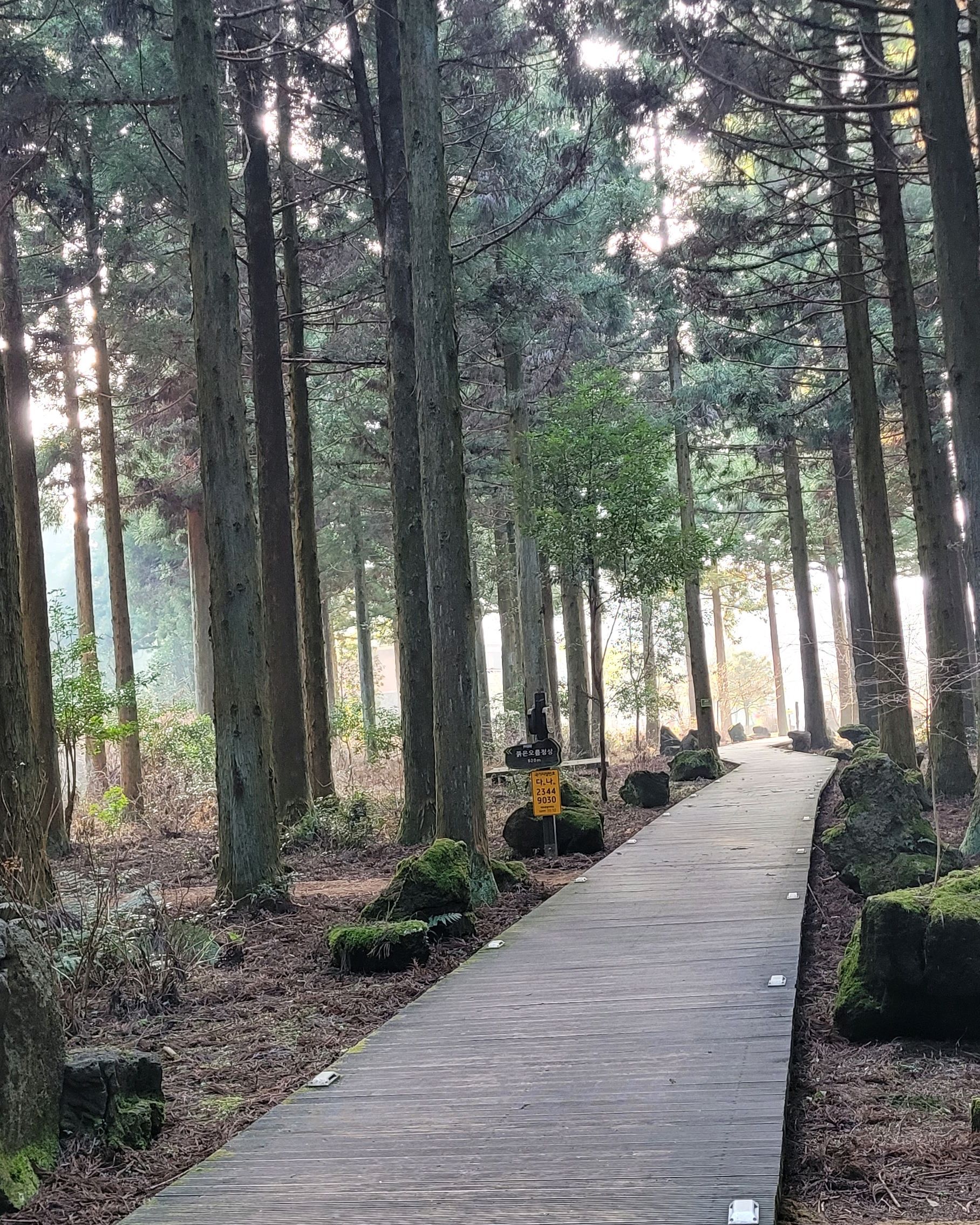 그리고 산책로는 무조건 가보세요. 경사가 크지도 않으니 꼭 삼나무 숲까지만. 우측경로는 딱1km정도 삼나무 숲이 예술이에요. 우측 전망대는 최악(운동코스, 전망X)이니 좌측에 있는 전망대로 가보세요