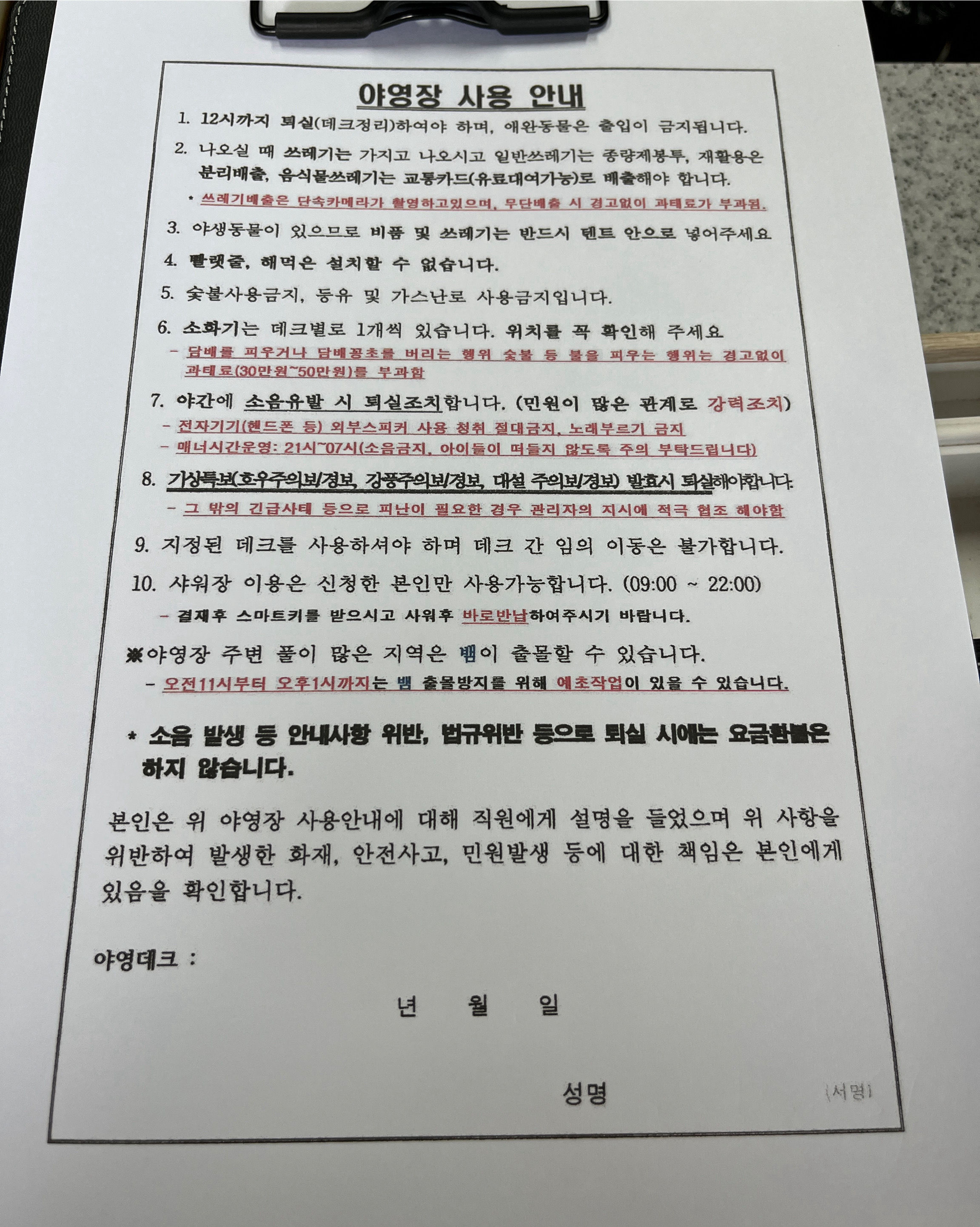 매표소는 무슨 범죄자 대하듯 하나하나 퇴실사유 읽어주고 서명해라. (정작 관리는 안한다)