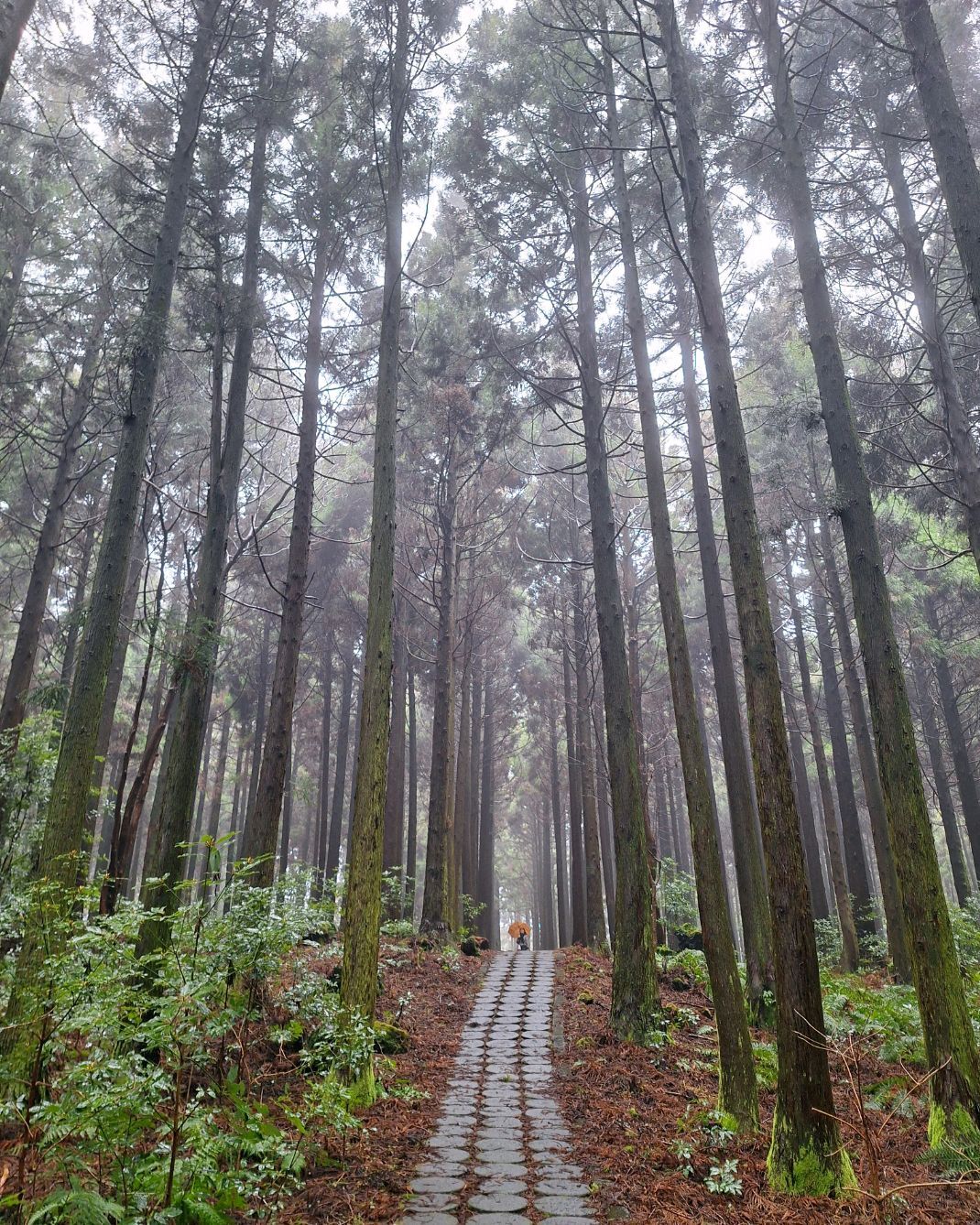 초입 삼나무 뷰가 예술이었어요~ 정상까지 오르막과 계단의 지옥이었지만 한시간 코스로 좋았어요~