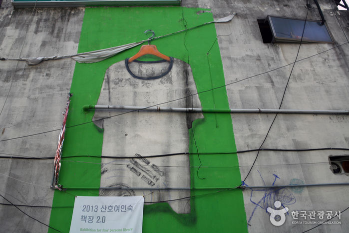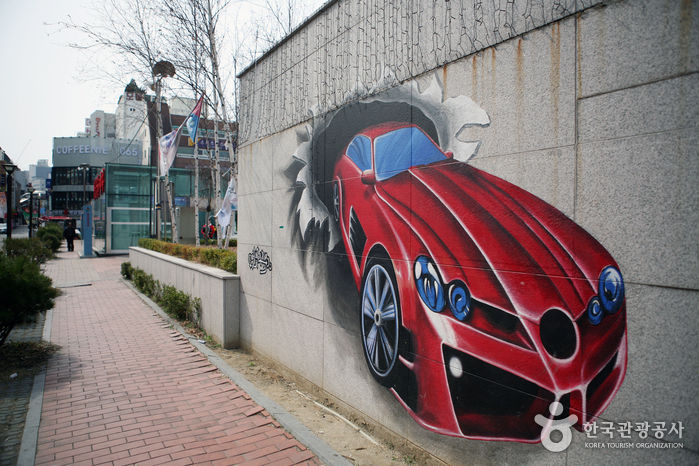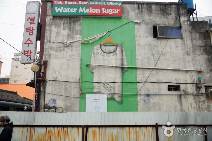대전 중구 대흥동 일대는 대전의 원도심이다. 세련된 도시 이미지가 느껴지는 건물과 카페가 있는가 하면, 1970~80년대를 떠올리게 하는 손때 묻은 풍경이 공존한다. 대흥동을 멋스럽게 꾸미는 것은 낡고 허름해 보이는 건물과 외벽에 그려진 빈티지한 그림이다. 벽을 뚫고 나오는 자동차, 산호다방 건물의 옷걸이에 걸린 티셔츠, 산호여인숙 골목의 티셔츠, 골목길 전기계량기에 그려진 그림이 아날로그적 풍경을 연출한다. 이밖에 오래된 골목과 화방, 소극장, 갤러리도 눈에 띈다.