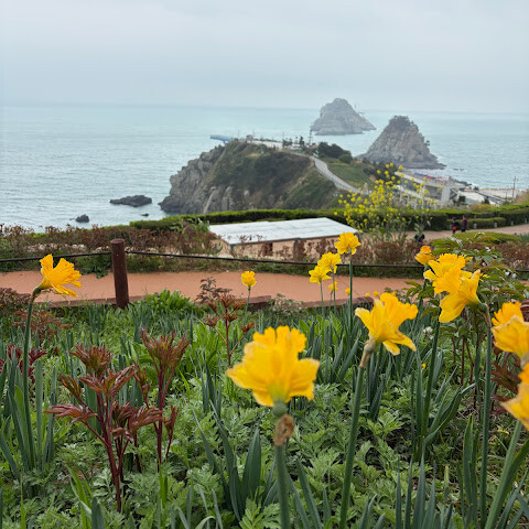 버스로 쉽게 갈 수 있는 인기 관광 명소입니다. 유리 전망대는 무료로 입장할 수 있지만, 신발 덮개를 착용해야 합니다. 유리 전망대를 따라 조금만 걸어가면 바다와 주변 섬들의 아름다운 풍경을 감상할 수 있습니다. 전망대에는 화장실이 딸린 레스토랑도 있습니다. 맞은편 공원은 산책하기 좋지만, 계단이 가파르고 경사가 심합니다. 하지만 계단을 오르면 환상적인 전망이 펼쳐지고, 특히 벚꽃이 만개한 시기에는 사진 찍기에도 아주 좋습니다.