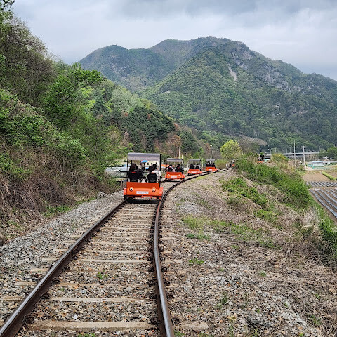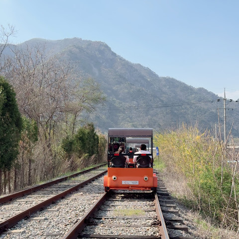 정말 특별한 경험이었어요. 자전거 트롤리를 타고 가는 거였거든요.<br>3월 말에 갔었는데, 산은 아직 흐리고 날씨는 춥지만 햇볕은 쨍쨍했어요. 여름에는 풍경이 정말 멋질 것 같아요.<br>전반적으로 만족스러워서 별 5개를 줬어요. 장단점을 말씀드리자면:<br>장점: 독특하고 아름다운 풍경, 산과 강, 편안하고 좋은 트롤리, 친절한 직원, 카페, 거대한 책등 조형물이 있는 포토존<br>장점: 실제 철로가 있고, 교통 통제 요원이 차를 멈추는 건널목도 있어요. 단점: 홍보 사진이나 영상에서는 좋아 보였는데, 실제로는 터널 조명이 꽤 어두웠어요.<br>단점: 노선의 일부 구간은 별장 밭 옆으로 이어지는데, 거기에 뭔가를 심고 있더라고요. 음, 그게 전부예요.<br>단점: 트롤리 탑승 시간이 짧고, 후반부에는 무슨 이유인지 나무 벤치가 있는 복고풍 열차(로맨틱 열차)로 갈아타게 돼요.<br><br>-: 서울에서 지하철로 2시간, 인천에서 가면 3시간이나 걸리는 좀 먼 곳이에요.<br>그리고 제 잘못이라고 생각해서 부정적인 의견은 아니지만 두 가지 더 말씀드리자면:<br>1. 공연은 약 90분 간격으로 있어요. 저희는 시간표를 확인하지 않고 공연 시작 3분 전에 도착했어요. 그래서 주변을 돌아다니면서 기다려야 했는데, 공연장도 작아서 커피 마시는 것 외에는 할 게 별로 없었어요.<br>2. 공연이 끝나면 출발역으로 돌아가는 셔틀버스를 탈 수 있어요(예를 들어 주차장에 차를 세워둔 경우). 저희는 셔틀버스를 못 찾았어요. 버스 주차장과 버스 정류장처럼 보이는 곳은 있었는데, 똑같이 생긴 하얀색 버스들 중에서 어떤 게 셔틀버스인지 전혀 알 수가 없었어요. 직원도 없고, 관광객도 저희밖에 없어서 물어볼 사람조차 없었어요. 지하철로 왔기 때문에 그냥 가장 가까운 역까지 걸어갔어요(1.3km).