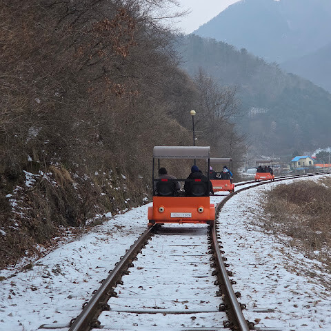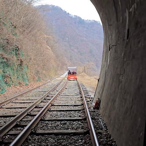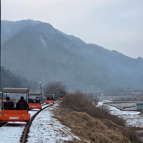 한국 레일바이크를 처음 탔어요. 정말 편했어요... 4인승과 2인승 자전거를 탔는데, 오르막이 거의 없어서 아이들 데리고 가기에 딱 좋았어요!