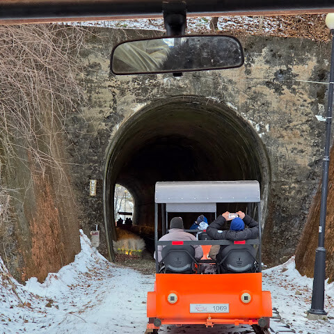 정말 멋진 곳이에요. 기차에서 페디캡을 타 보세요. 약 30분 정도 걸립니다. 날씨가 쌀쌀하니 따뜻하게 입으세요. 속도가 빨라지면 추워지니까요. 길을 따라 아름다운 경치가 펼쳐지고, 각기 다른 디자인의 터널 네 개가 있습니다.