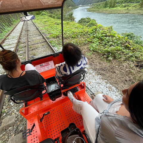 자전거 레일 기차도 멋지네요. 사실 자전거라고 할 순 없지만, 내리막길이라 패들링은 필요 없어요.