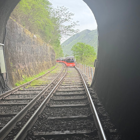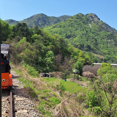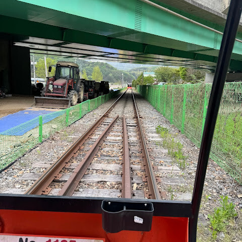 투어의 마지막 코스였어요. 레일을 타고 가는 동안은 즐겁고 편안했는데, 경사가 가파른 구간에 들어서면서 조금 힘들었어요. 😅 다리 운동은 건너뛰고 레일바이크를 타도 될 정도예요. 😆 봄 풍경으로 바뀌는 모습이 정말 아름다웠는데, 봄이나 가을에 왔으면 더 좋았을 것 같아요. 촬영 장소도 본 것 같은데, 확실하진 않아요. 😅