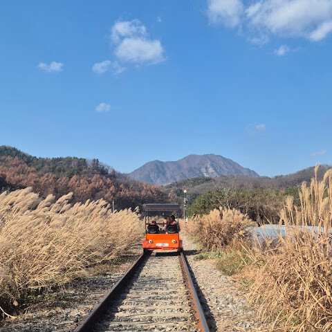 한국 레일바이크를 처음 탔어요. 정말 편했어요... 4인승과 2인승 자전거를 탔는데, 오르막길이 거의 없어서 아이들 데리고 가기에 딱 좋았어요!