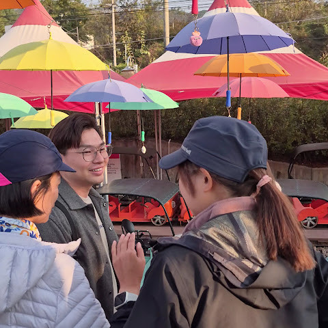 런닝맨 초반에 나왔던 곳을 체험하러 왔어요. 재미로 가득하고 경치도 정말 멋져요! 시원한 가을바람과 함께하니 놀이기구 타기가 정말 완벽해요.
