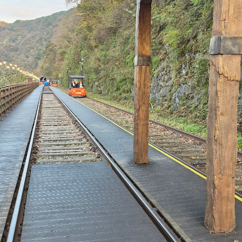 이 액티비티 정말 좋았어요! 레일바이크는 아름다운 풍경을 지나 테마 터널 3곳을 지나 약 30분 정도 걸립니다. 그런 다음 '로망스카' 기차를 타고 20분 더 이동한 후, 버스 셔틀을 타고 출발 지점으로 돌아갑니다.