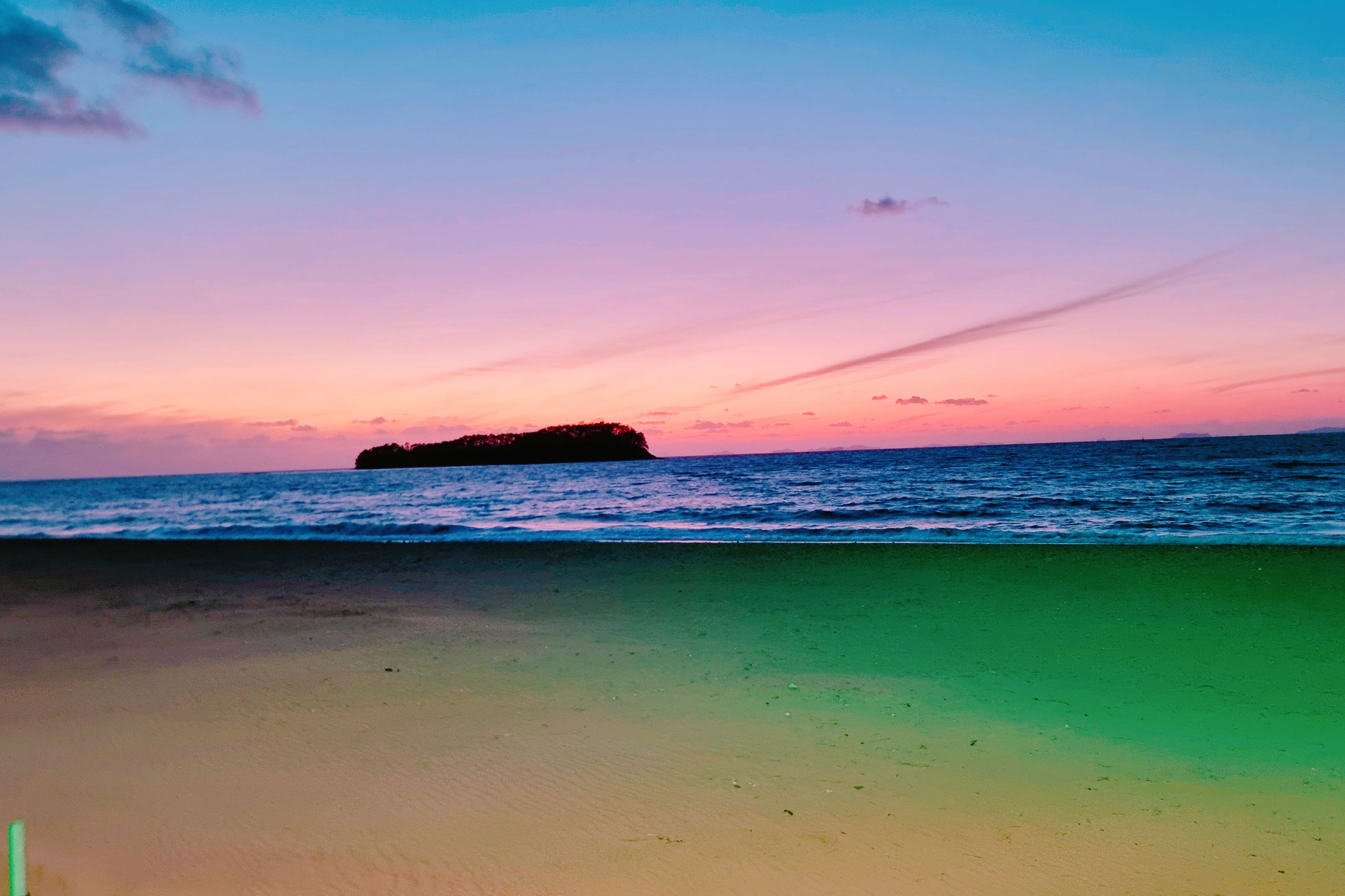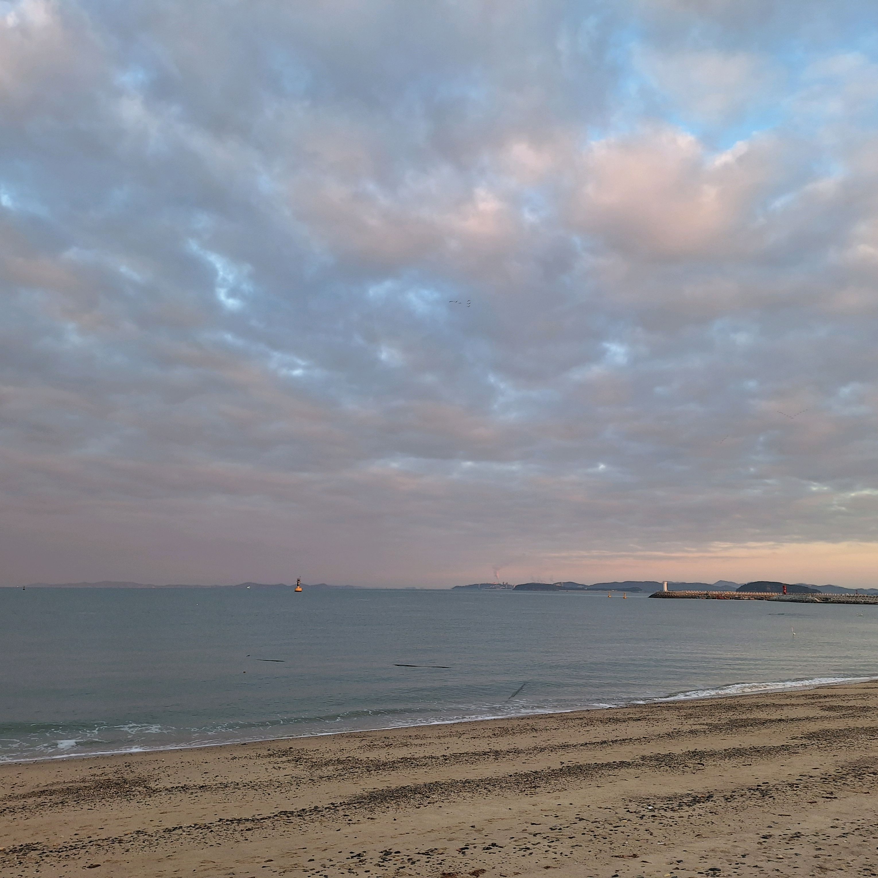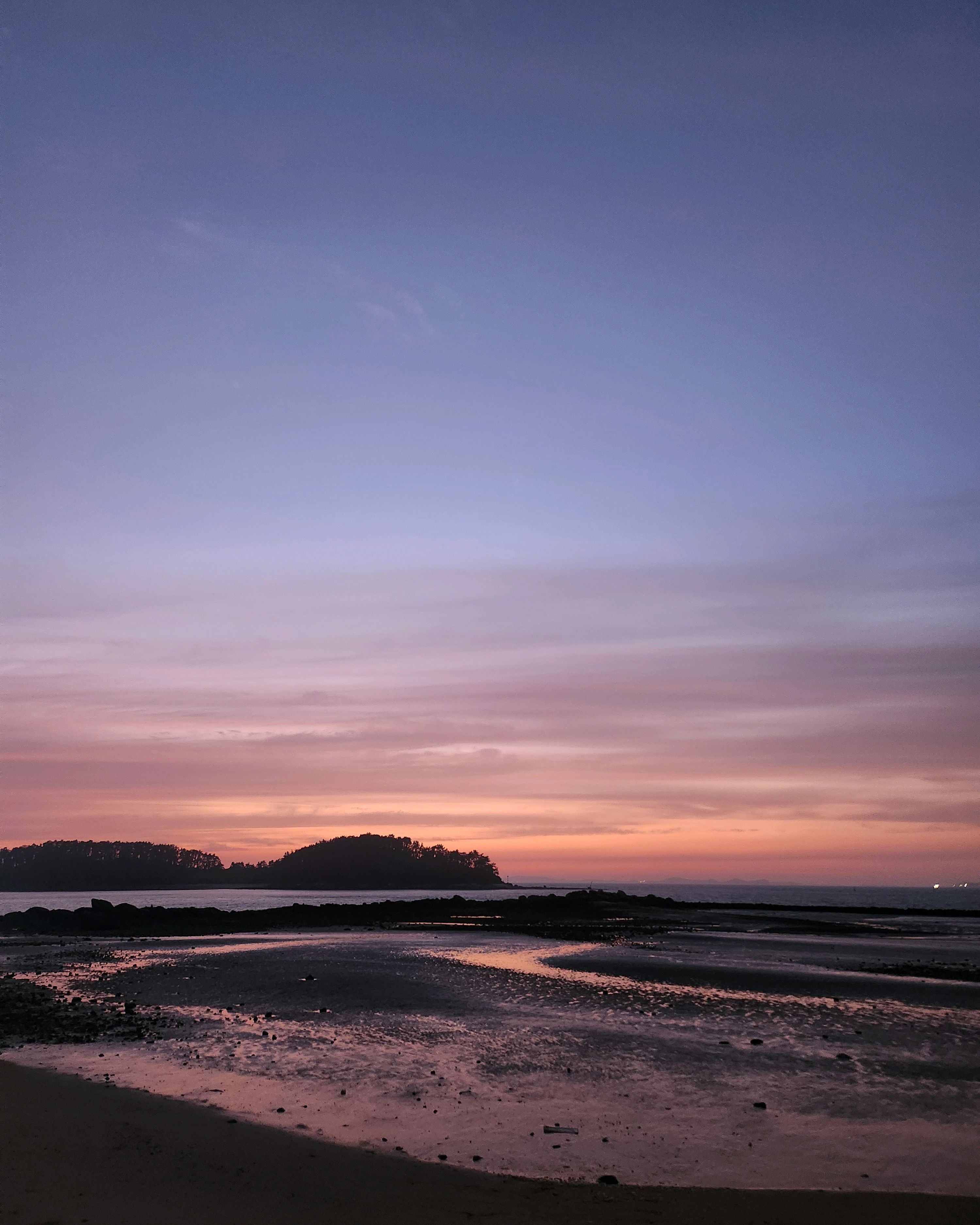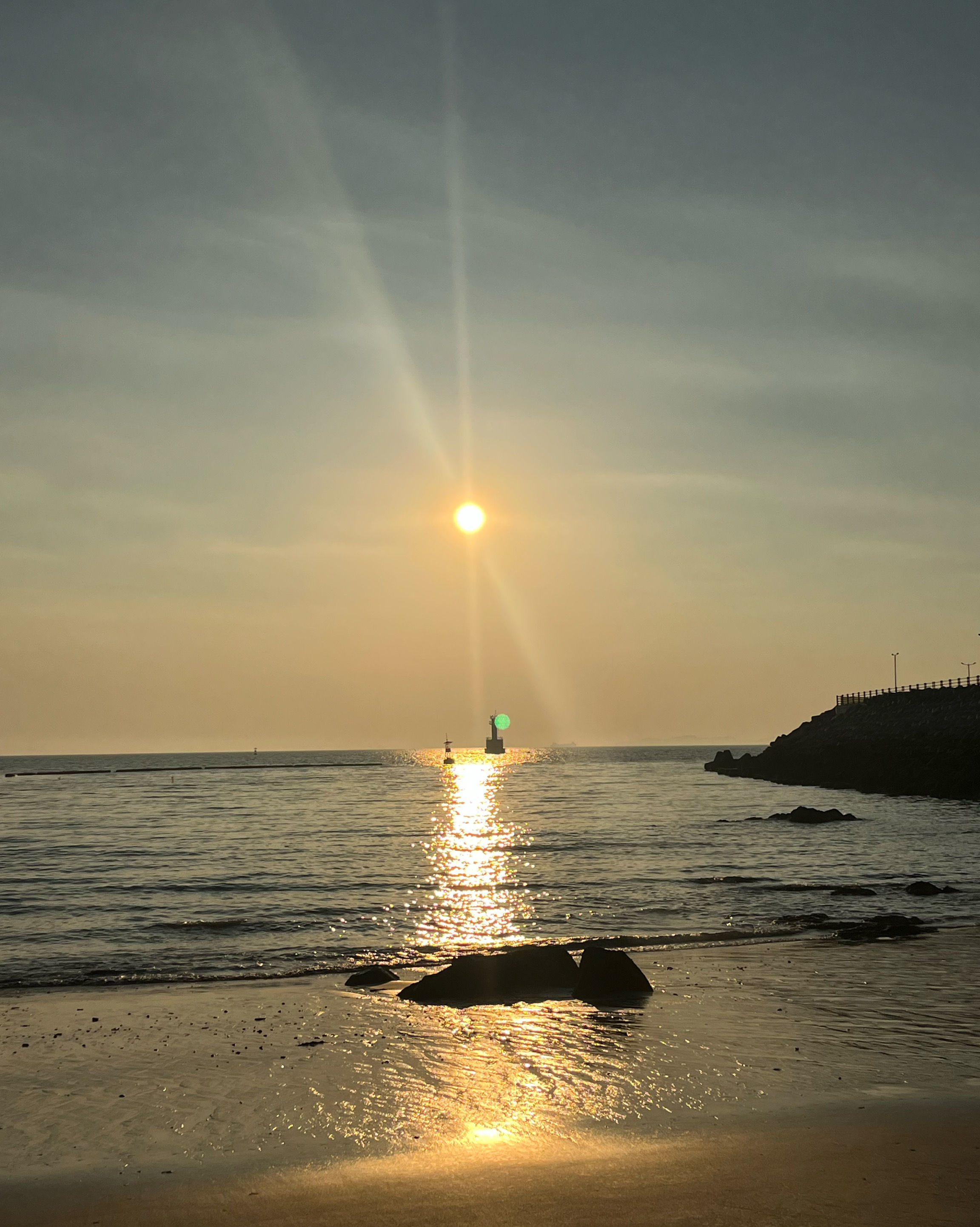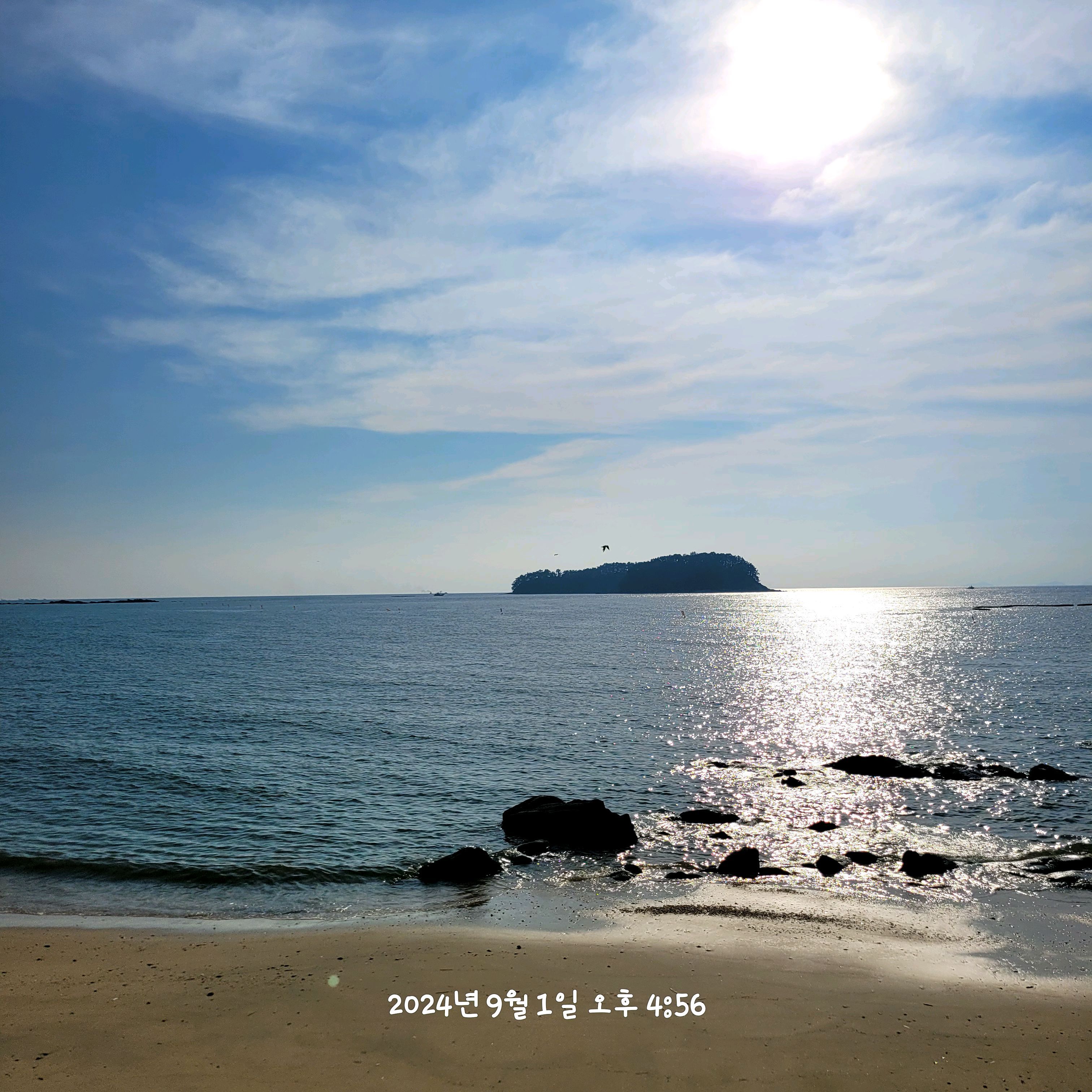 고요하고 한적한 아침풍경이 매우 이뻤어요. 해변끝에 큰 펜션이 있는데 편의점, 카페, 치킨집 등 각종 인프라가 깔큼하게 건물 내에 있어서 좋았어요.